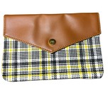 - Ipsy Glam Bag Yellow White Black Plaid Brown Makeup Cosmetic
