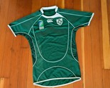 Good condition with some fading from light exposure, see photos. No rips or holes. Size worn off, but fits like a medium in my opinion. Official Rugby World Cup 2007 Ireland shirt by Canterbury of New Zealand, size L. Made from cotton and polyester. Features embroidered tournament and IRFU logos, stylish white piping, and structured collar. A collectible vintage design from a classic tournament. Approximate measurements: ~19" pit to pit 28" shoulder to hem