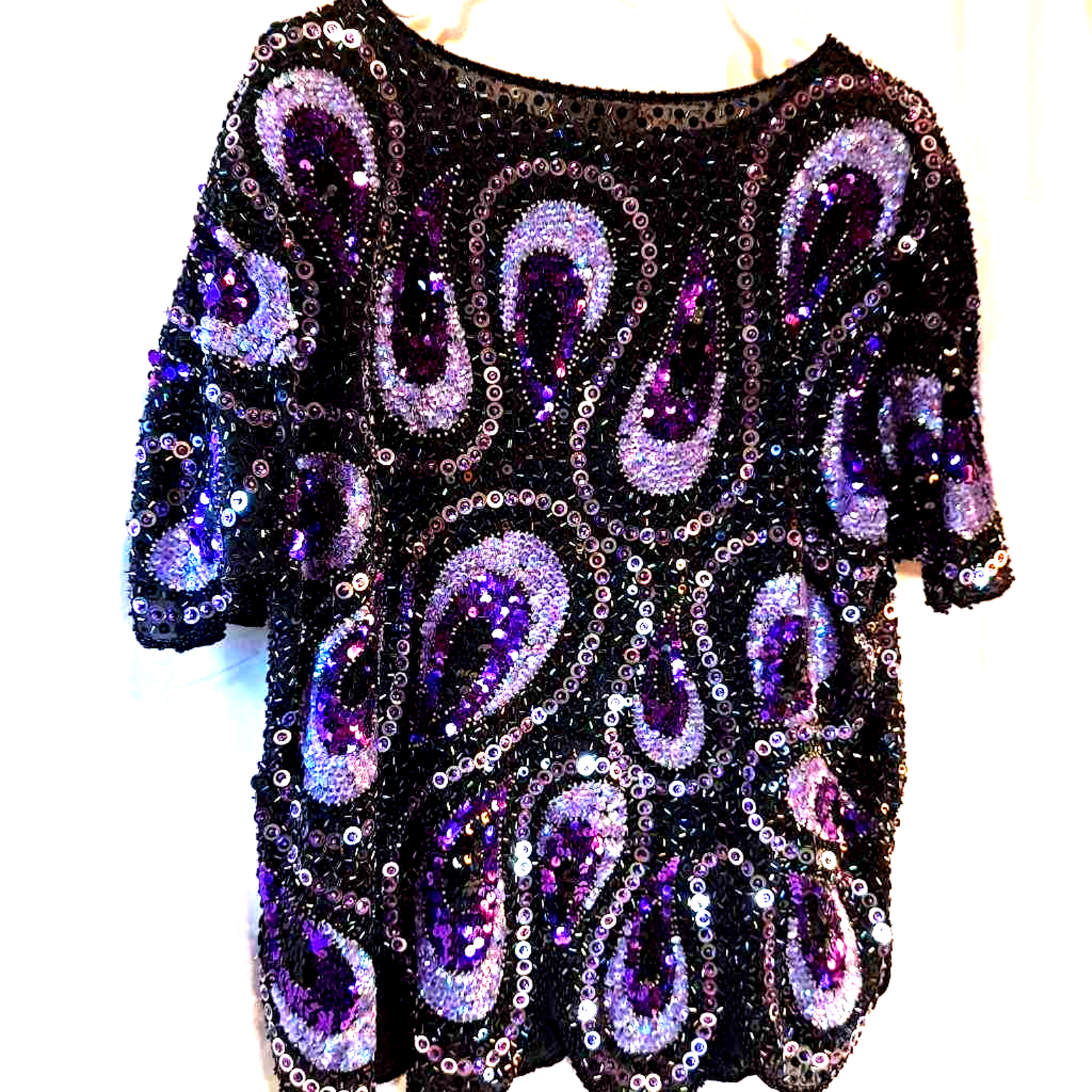 - Iris Women's Blouse Multicolor Short Sleeve, Sequin Beaded Evening L/XL