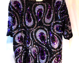 Iris Women's Blouse Multicolor Short Sleeve, Sequin Beaded Evening L/XL