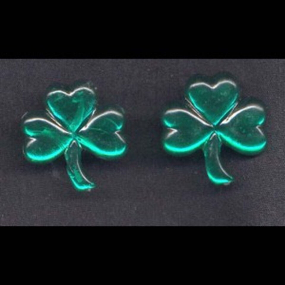 Add a touch of luck to your ensemble with these Irish Luck Charm Shamrock Jewel Button Earrings. These earrings feature a shamrock shape with a faux emerald plastic main stone in a vibrant green color, nickel-free surgical steel posts with comfort disk backs, suitable for unisex wear, and come with a stud closure that fits comfortably on the lobe.