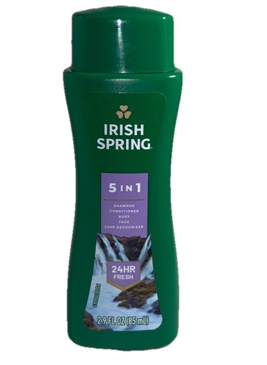- Irish Spring 5-in-1 Travel Sz 2.9oz Shampoo/Conditioner/Body/Face/24 HDeodorizer