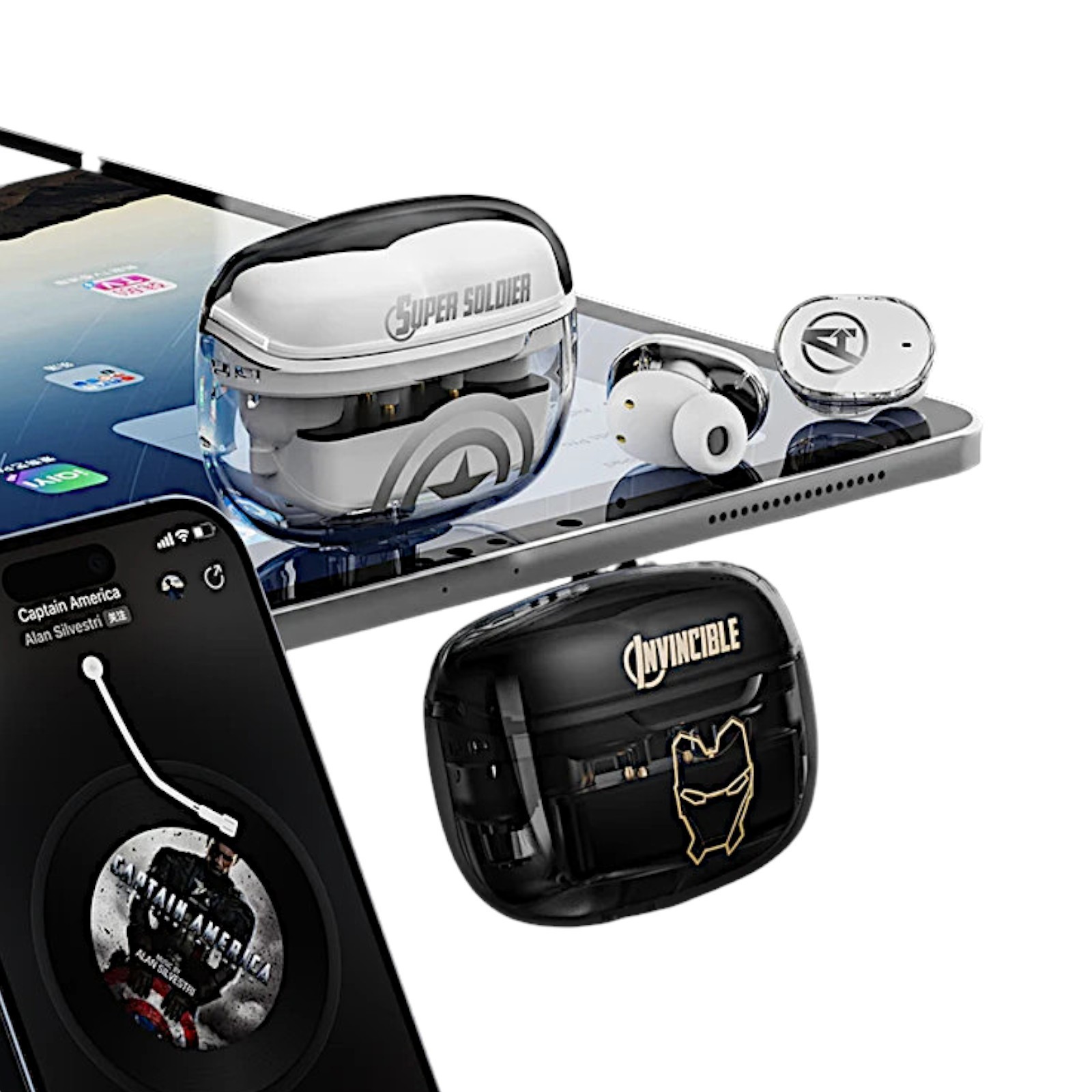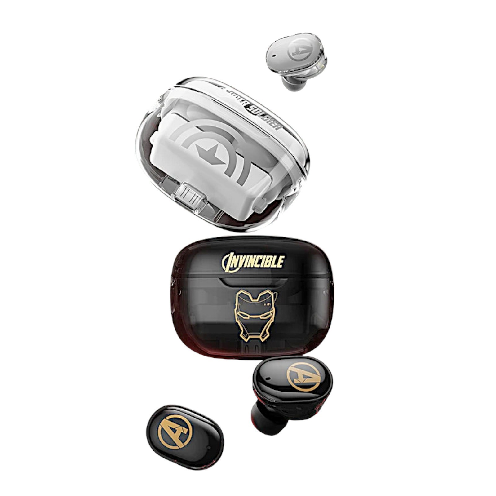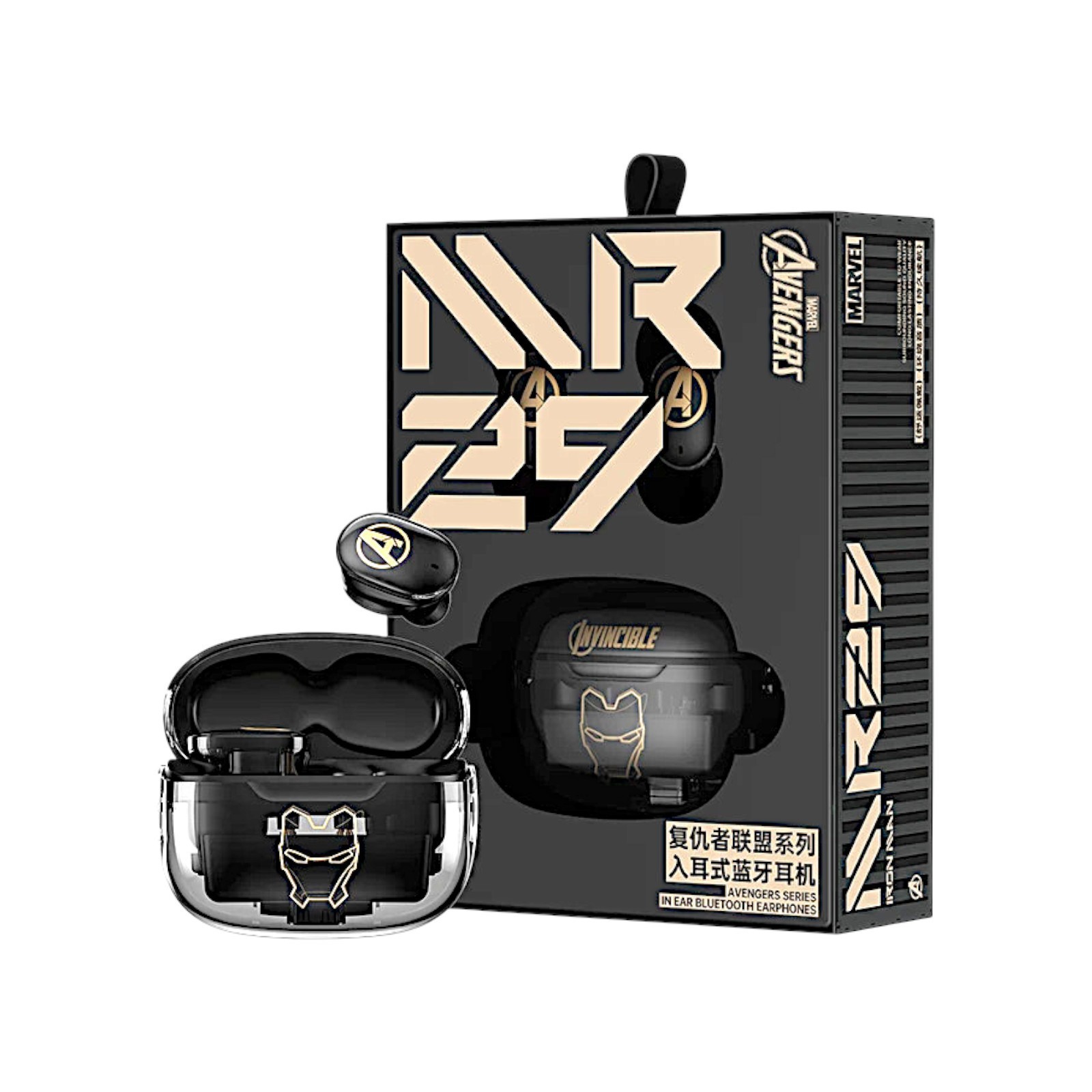 - Iron Man Avengers Wireless Bluetooth 5.3 Earphones Waterproof Clear Case Set Box