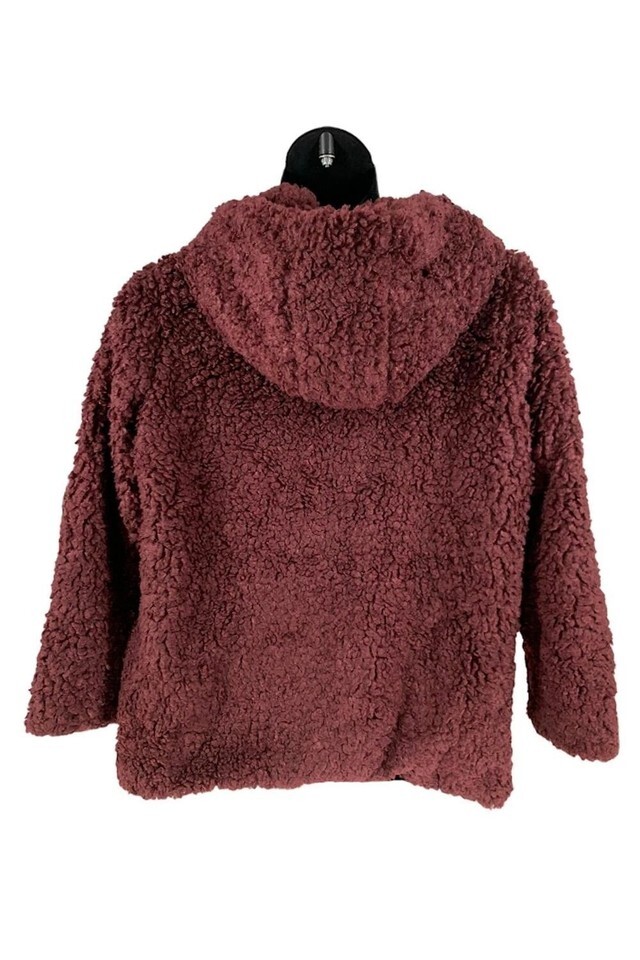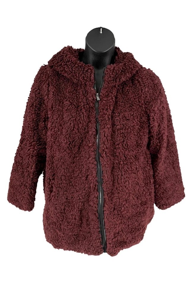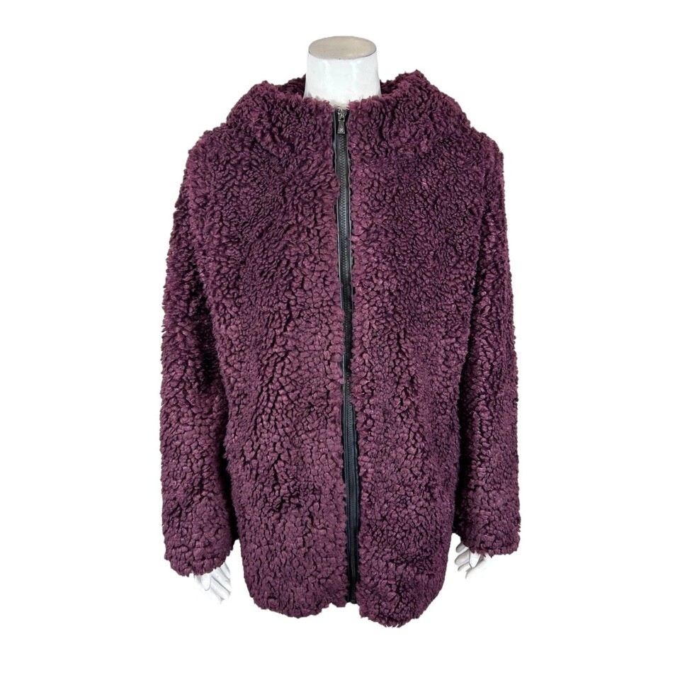 Isaac Mizrahi Regular Size 12 Women's Curly Faux Fur Hooded Coat Jacket Plum
