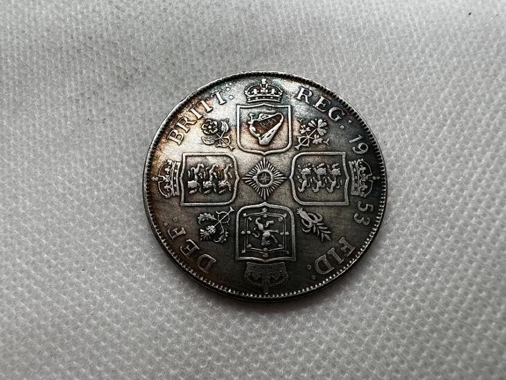 Esta exquisita replica de moneda de fantasía de coronacion de Isabel II muestra el iconico retrato de la reina Isabel II, complementado con emblemas heraldicos en el reverso. Esta reproduccion única esta inspirada en autenticas monedas britanicas, con la semejanza de la Reina con sus características distintivas y un motivo de corona que subraya la importancia de la monarquía britanica. El reverso de la moneda muestra las crestas heraldicas de los cuatro países constituyentes del Reino Unido: Inglaterra, Escocia, Irlanda y Gales, artísticamente unidas y coronadas, presentando una representacion armoniosa de la unidad de la nacion. Aunque este artículo no es una acuñacion historica original, ofrece una replica notable que conserva una alta calidad artística y detalle. Esta pieza coleccionable proporciona a los entusiastas una vision cautivadora de la rica historia de Gran Bretaña y su representacion a traves de la numismatica. Ideal para aquellos interesados en la historia real o la coleccion de monedas, esta impresionante replica sin duda mejorara cualquier coleccion.