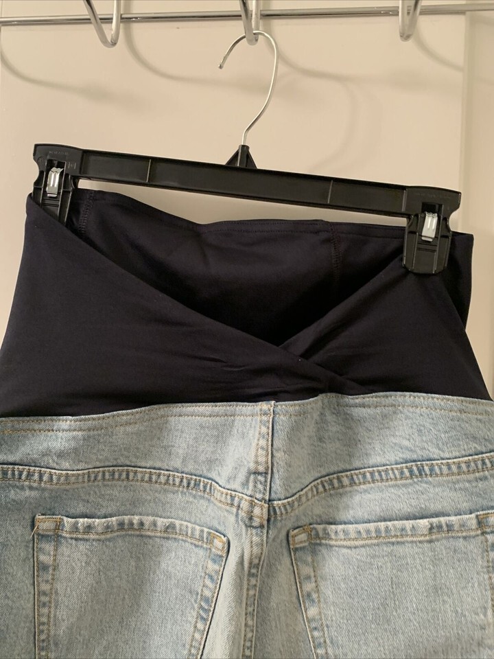 Isabel Maternity Crossover Panel Midi Women's Maternity Jean Shorts Light Blue New with tag.