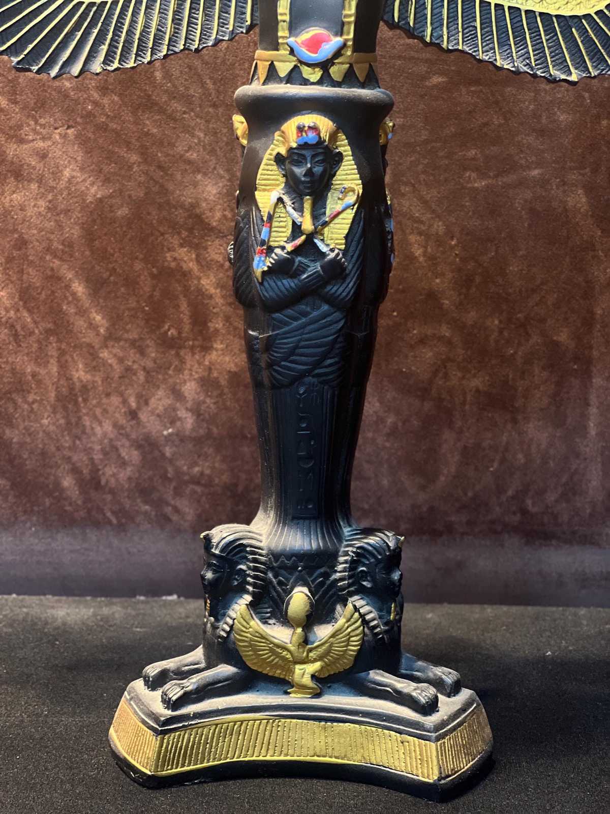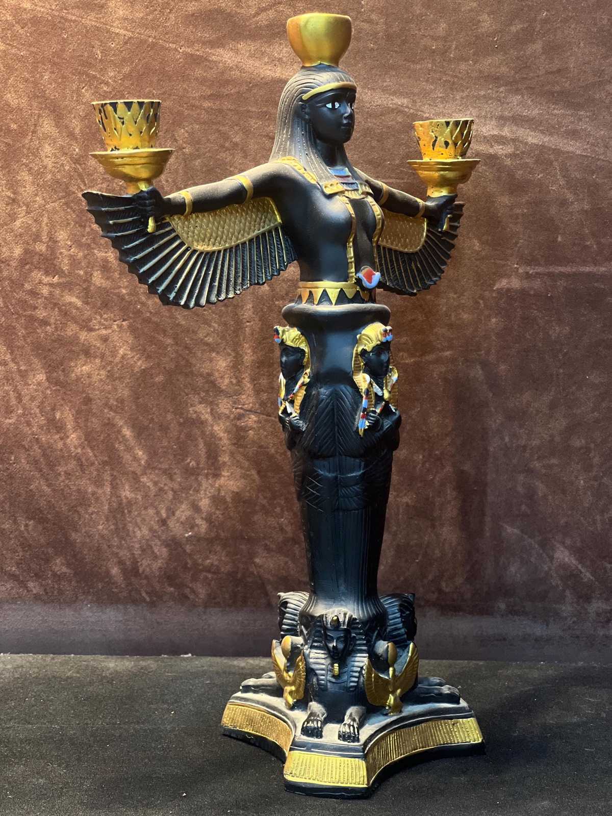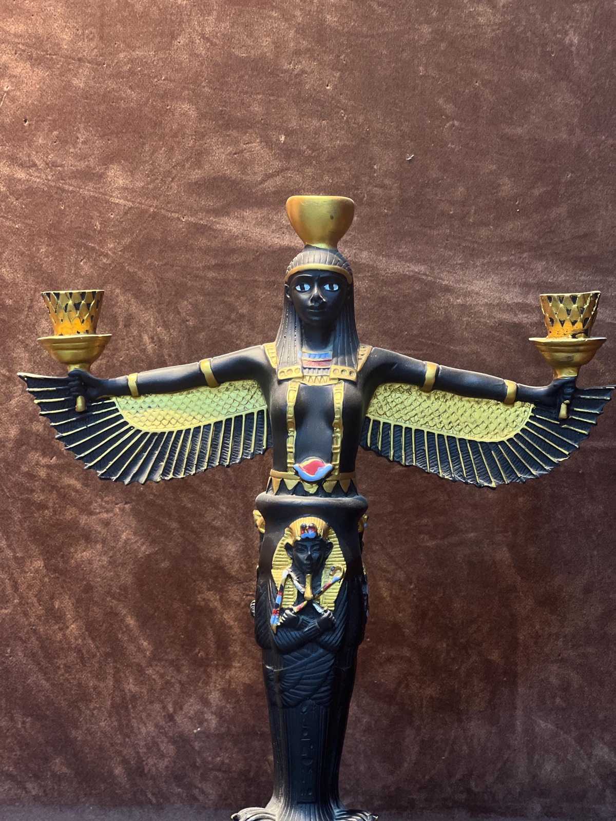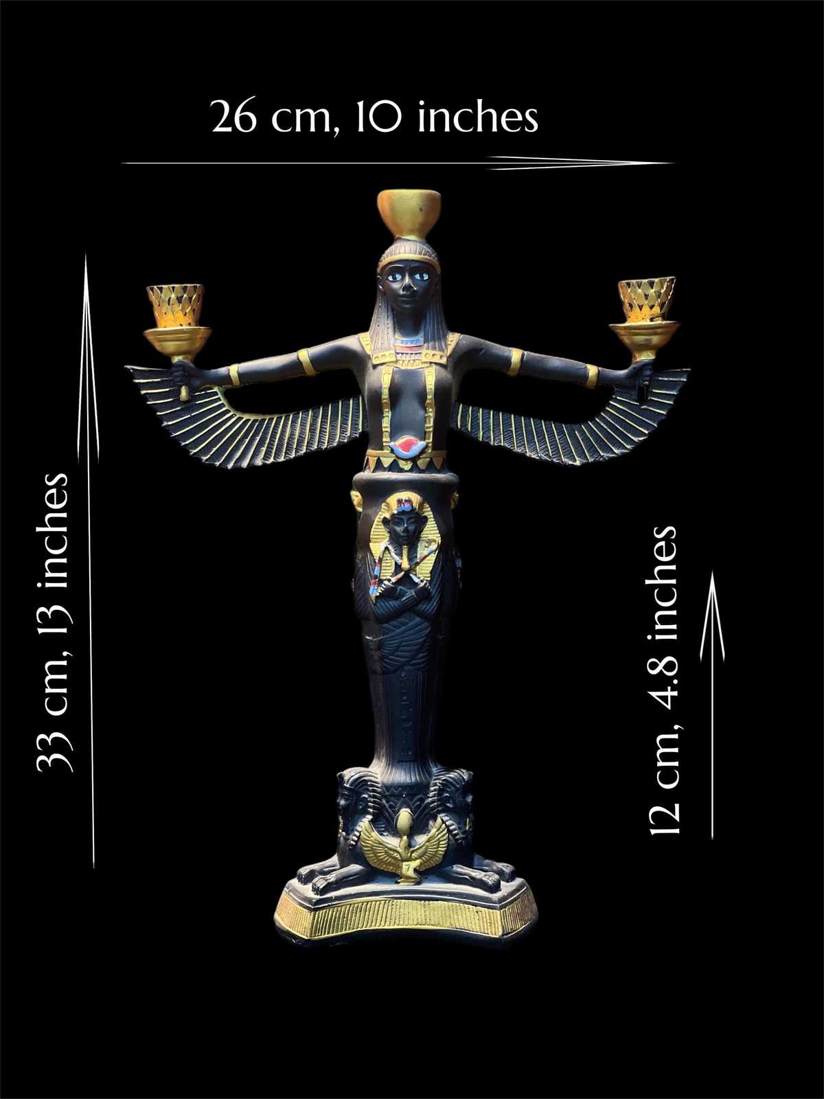 - **Intricate Craftsmanship:** Each candle holder is meticulously handcrafted and carved, showcasing elaborate details of Isis with her majestic open wings. The statue exudes an aura of elegance and spirituality, making it a stunning focal point in any room.