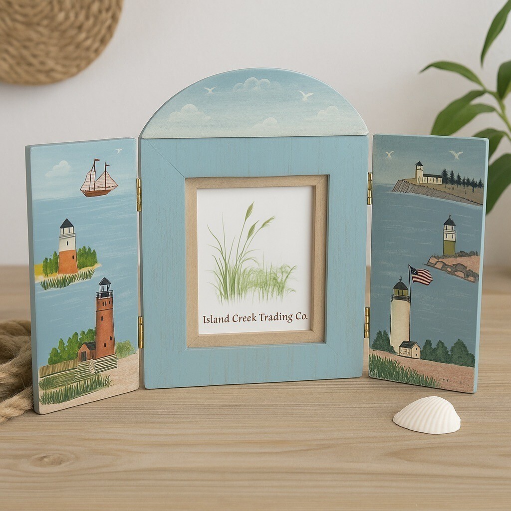 - Island Creek Trading Co. Lighthouse Coastal Fold-Out Wooden Picture Frame – Naut