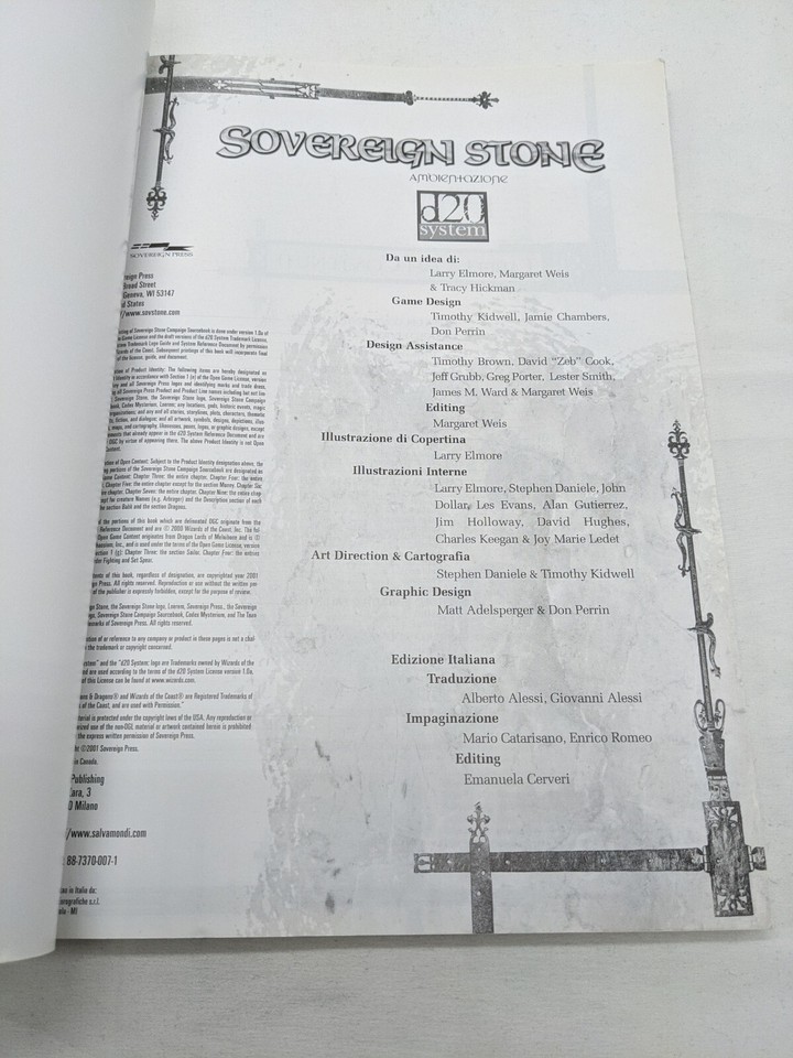 Italian Edition Dnd Sovereign Stone Campaign Sourcebook. Combined Shipping (for USA Customers Only)