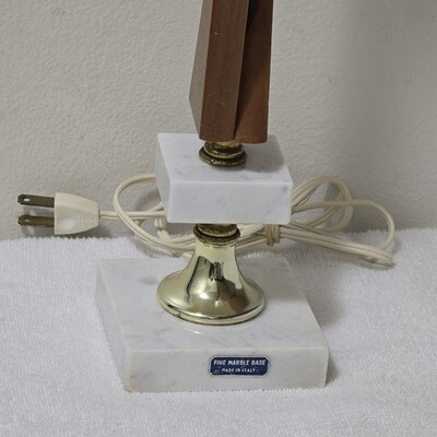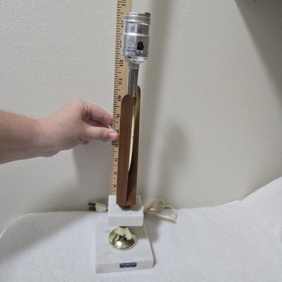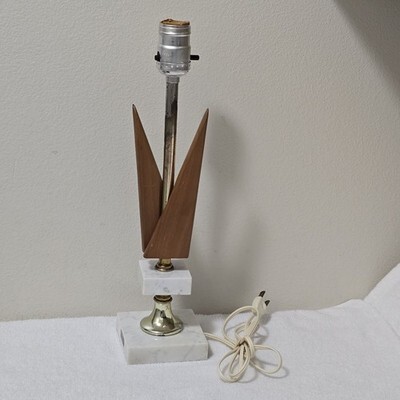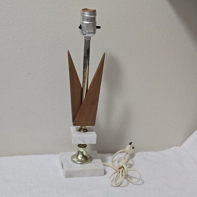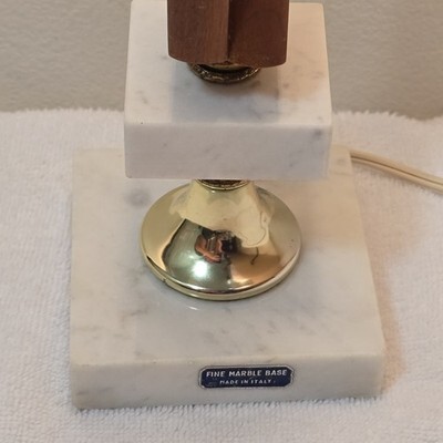 Italian MCM Marble Table Lamp Atomic Wood Mid Century Modern 14.5? Authentic mid century modern sculptural table lamp Atomic / Danish modern style wood blade design Solid wood accents with chrome center stem Heavy genuine Italian marble base with brass tone hardware Base label reads: ?Fine Marble Base ? Made in Italy? Original rotary on/off socket switch Height: approximately 14 1/2 inches tall Power cord with standard two-prong plug Bulb and lampshade NOT included Tested and functions perfectly ? lights up with no issues ***Tested and works great. Beautiful vintage condition with normal light wear consistent with age and use. Bulb and shade not included. Comes exactly as pictured. Please see photos.*** SMOKE FREE HOME! SUPER FAST SHIPPING! 11-A