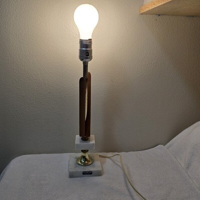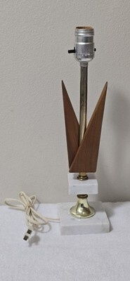 Italian MCM Marble Table Lamp Atomic Wood MCM 14.5”
