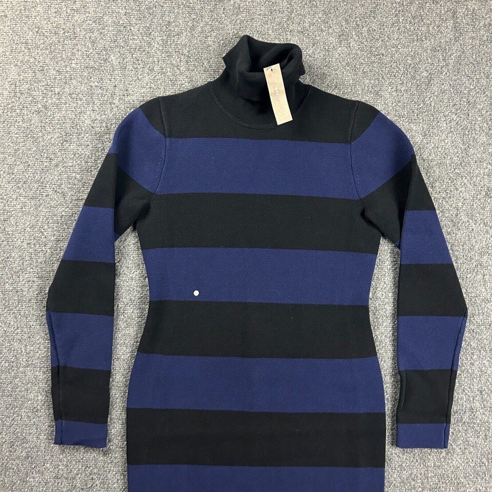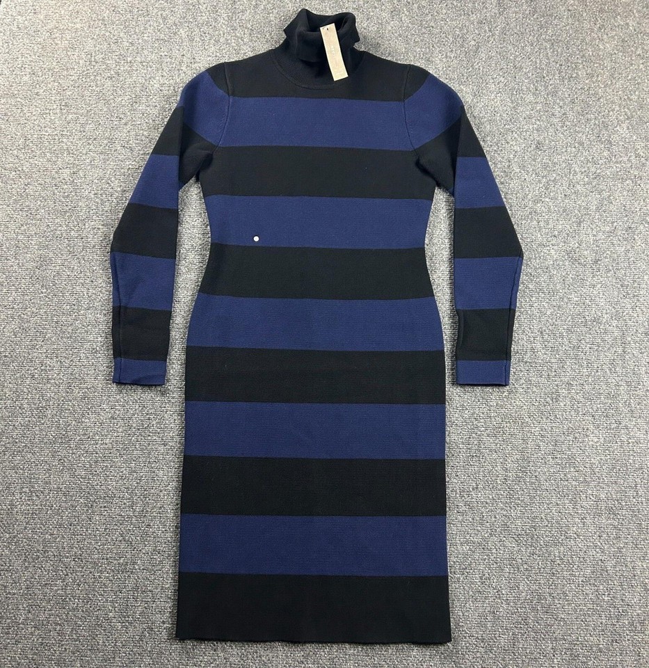J Crew Dress Womens XS Blue Striped Sheath Sweater Turtleneck Cotton Blend New
