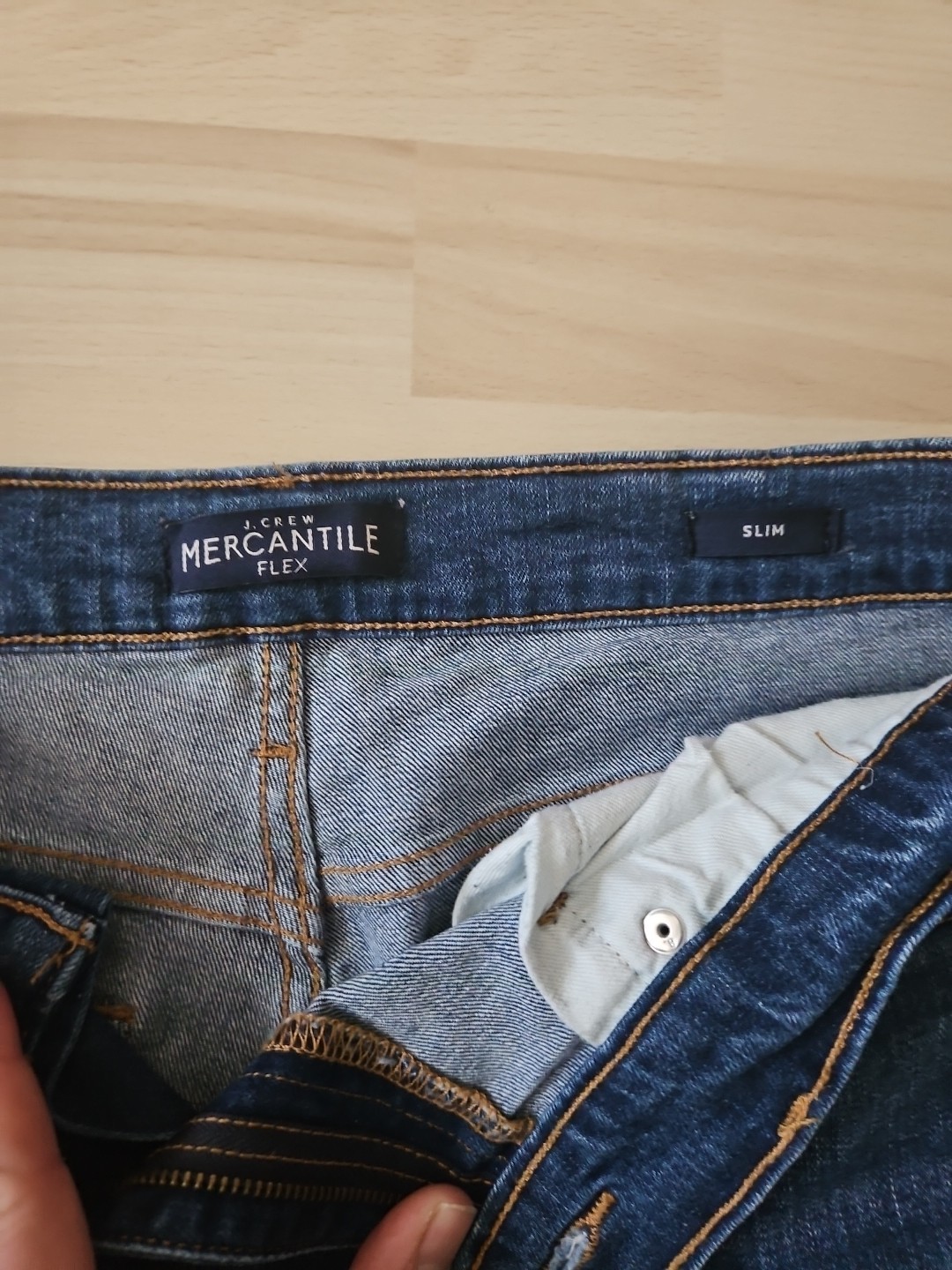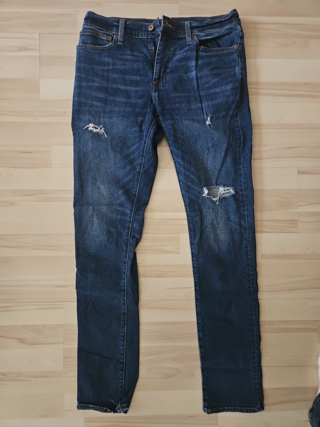 - J Crew Mercantile Flex Slim Fit Jeans, Men's 32x34, Blue Ripped Style