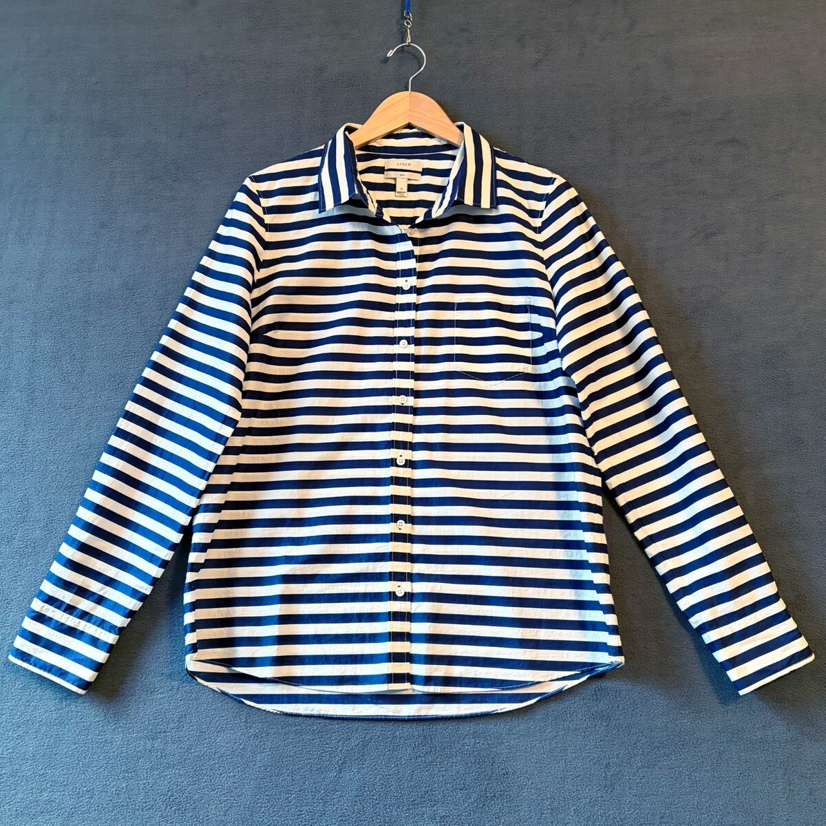 J Crew Navy/White Stripe Button Front Shirt Lightweight Boy Cut- Women's 12