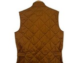 J Crew Vest Mens Medium Brown Quilted Outerwear Outdoor, Preppy, Casual Shell: 100% recycled polyester. Back coating: Polyurethane. Lining: recycled polyester. Green olive colored lining, diamond quilted pattern throughout, front zip closure, two front hand pockets, adjustable button waist tabs at back. Fair Trade Certified factory. Re-Imagined by J.Crew sustainability tag present. Tag size: Medium (Mens). Approximate flat measurements: Chest 21 inches, Length 26 inches. Style number: B1930, F23 Color: Brown with olive green lining Made in Vietnam Great versatile quilted vest for layering in outdoor or casual settings. Good pre-owned condition - spot on right shoulder - see pics and ask questions for more details.
