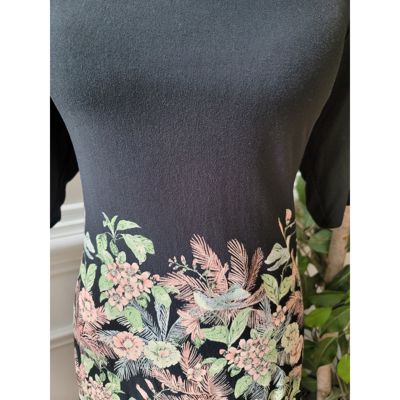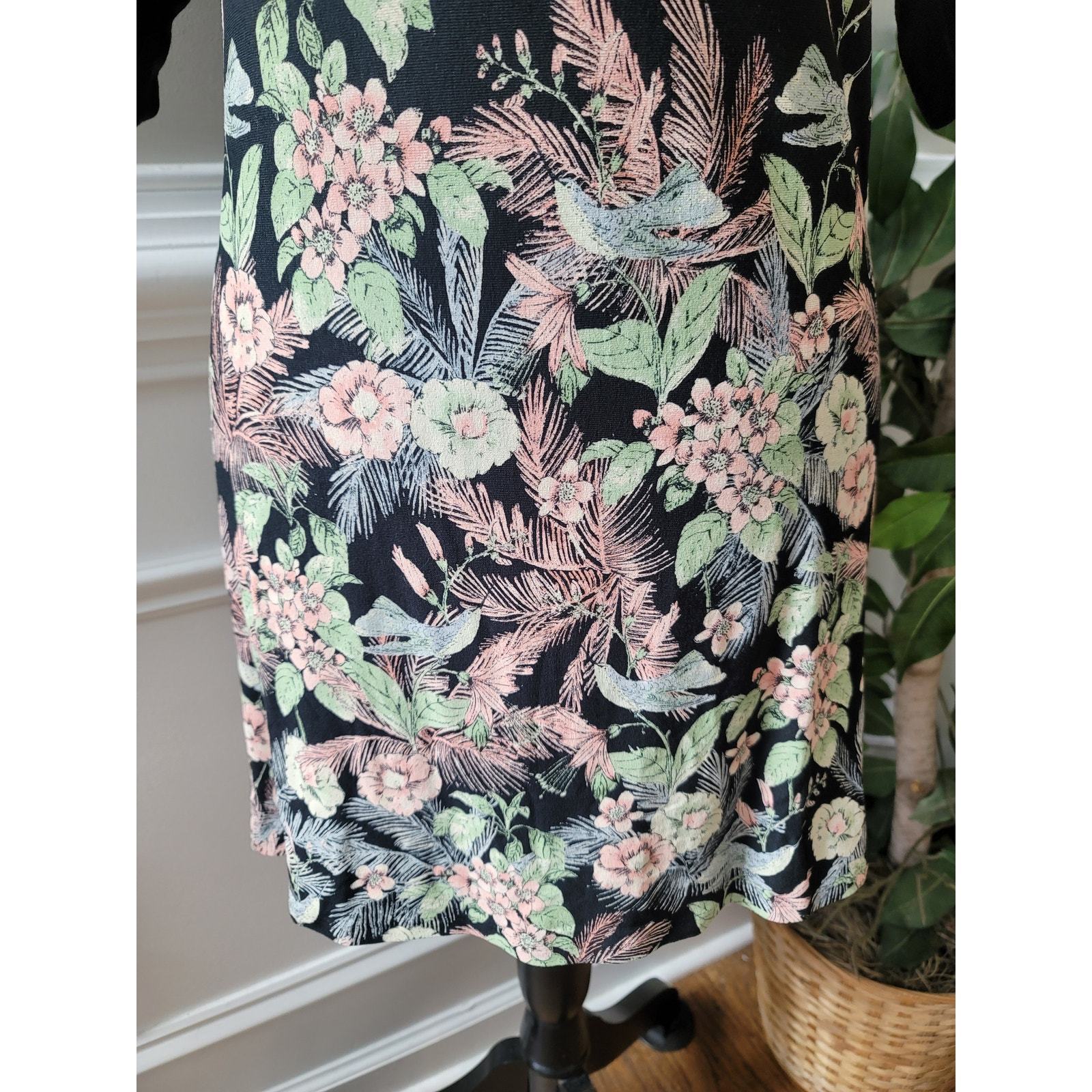 This women's size M blouse features a stylish black floral print and a flattering square neck.