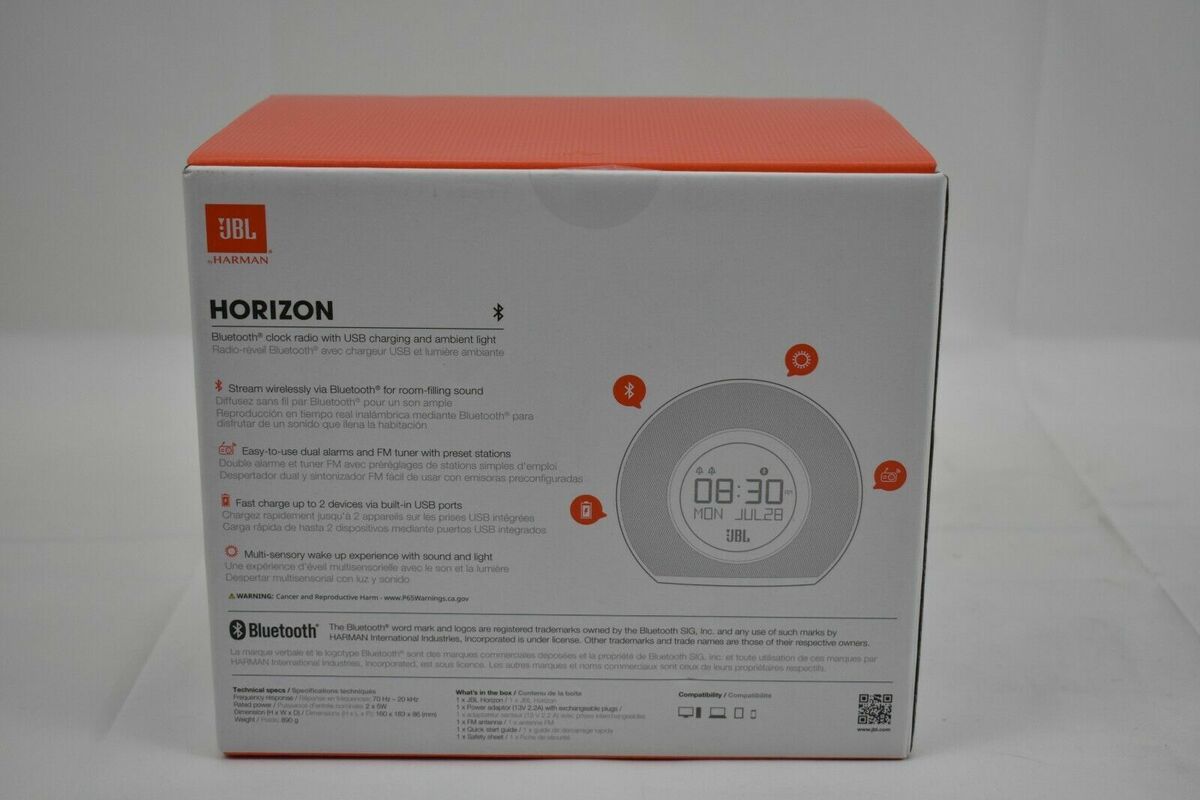 - JBL Horizon Bluetoot Alarm Clock FM Radio Speaker USB Charging LED Ambient Light
