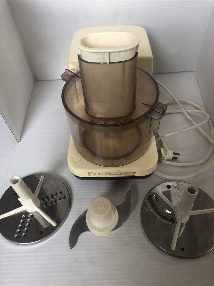 - JC Penny Vintage Food Processor With 3 Blades & Booklet . Tested& Works
