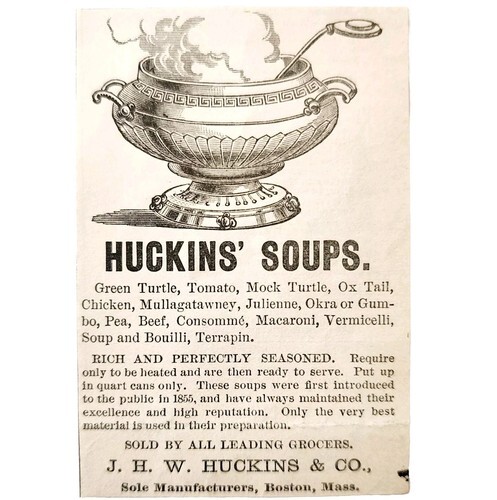 JHW Huckins Soup 1885 Advertisement Victorian Food Boston Massachusetts ADBN1A15