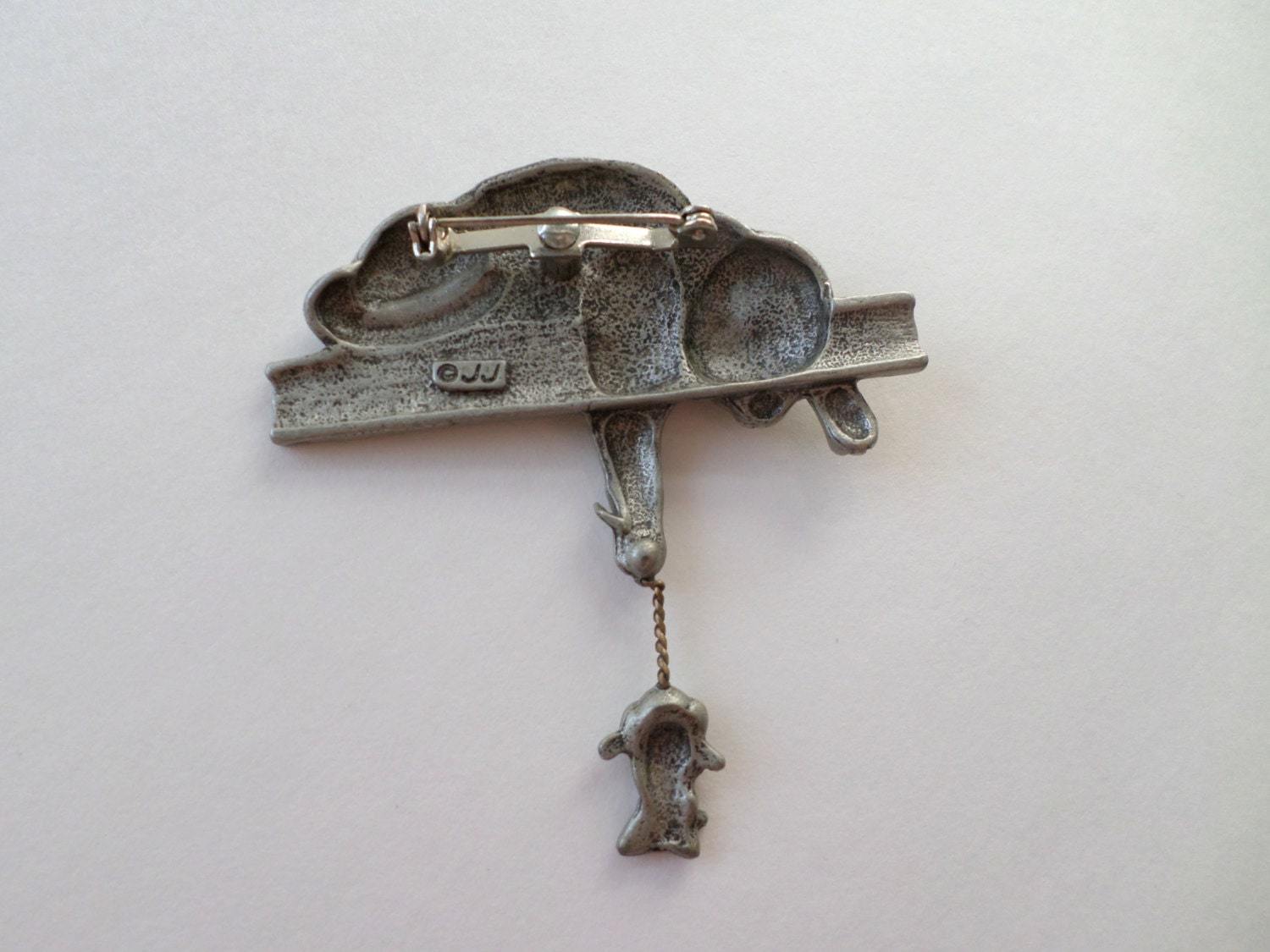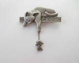 JJ Jonette Pewter Cat & Mouse Brooch Pin