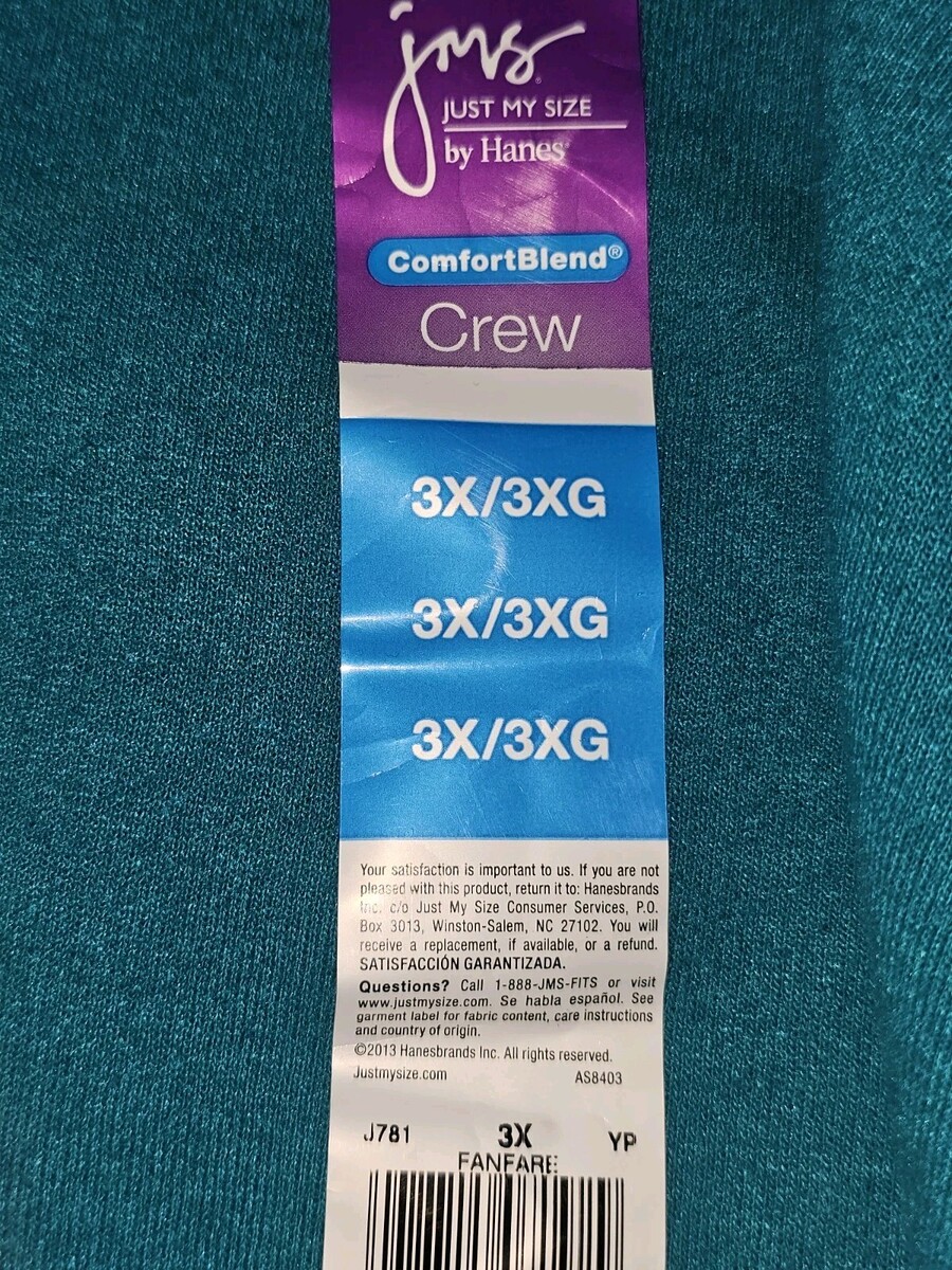 - JMS Just My Size by Hanes Womans Pullover Comfort Crew Sweatshirt Teal Sz 3X