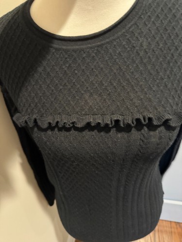 This Joie black sweater is in very good pre-owned condition aside from a small repair on the sleeve (as shown in the photo). It features: