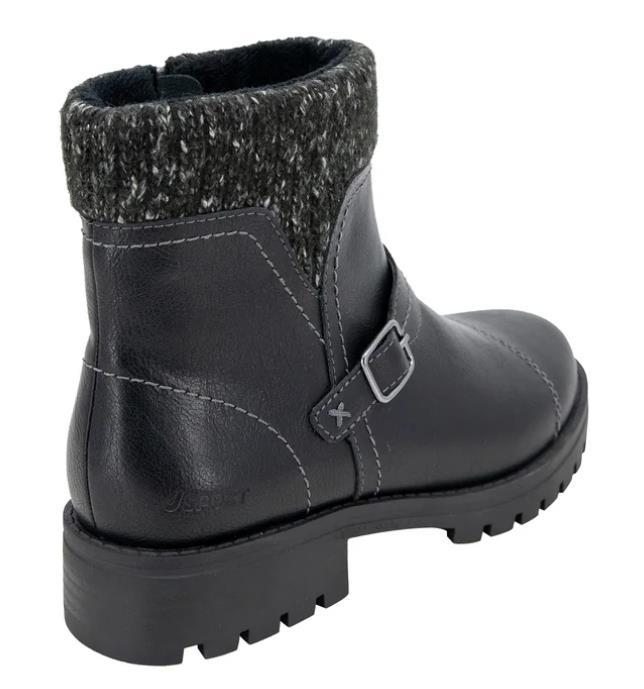 JSport Womens Boots Black Combat Ankle Cushioned Memory Foam Traction Zipper