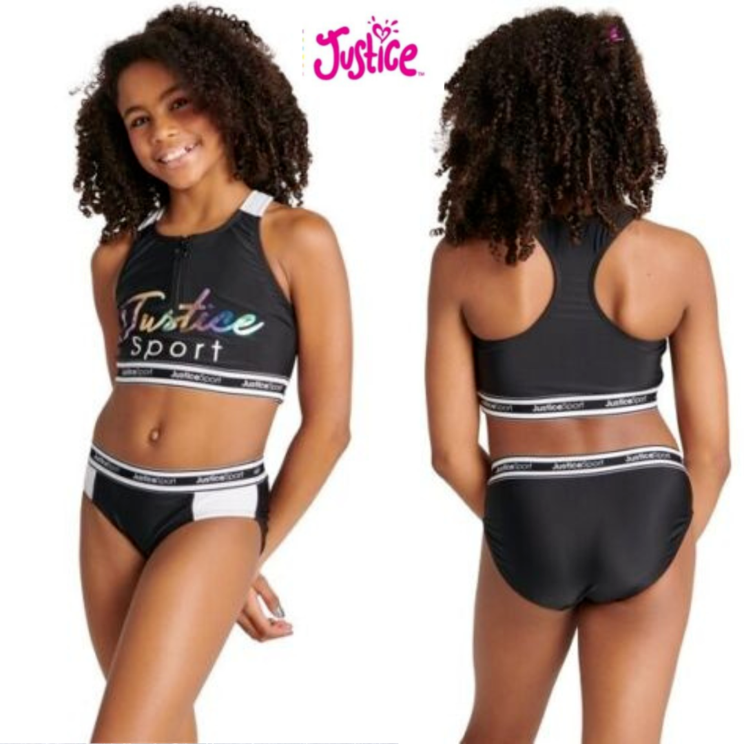 JUSTICE™ ~ Girls' XS (5/6) ~ Longline Zip Bikini ~ 2 Piece Swimsuit ~ Bikini