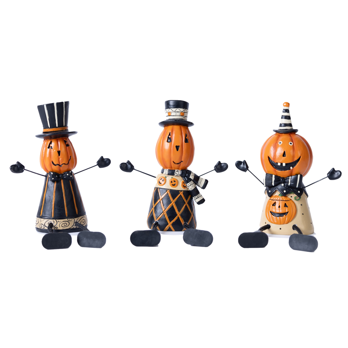 Spooky Yet Whimsical Design This collection features playful jack-o-lantern characters, making it a charming addition to your Halloween decor. Durable and Lasting Resin Construction Crafted from high-quality polyresin for a classic, long-lasting seasonal decoration. Perfect for Indoor Displays This set is ideal for mantels, entryway tables, or any space needing a festive Halloween touch. Suitable for indoor use only