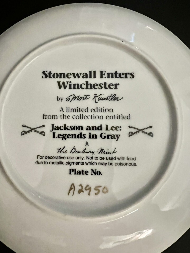Stunning Jackson and Lee:Legends in Gray STONEWALL ENTERS WINCHESTER Kunstler Plate WOB.