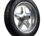 No more flats. 15.5 in Sport Flat Free wheel and tire assembly 6 in hub. Height: 15 1/4 in. Length: 15 1/4 in. Width: 6 in.