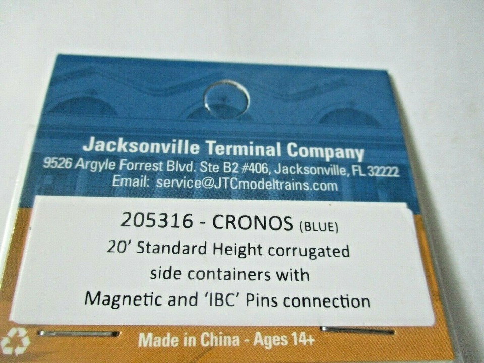 - Jacksonville Terminal Company # 205316 Cronos (Blue) 20' Standard Container (N)