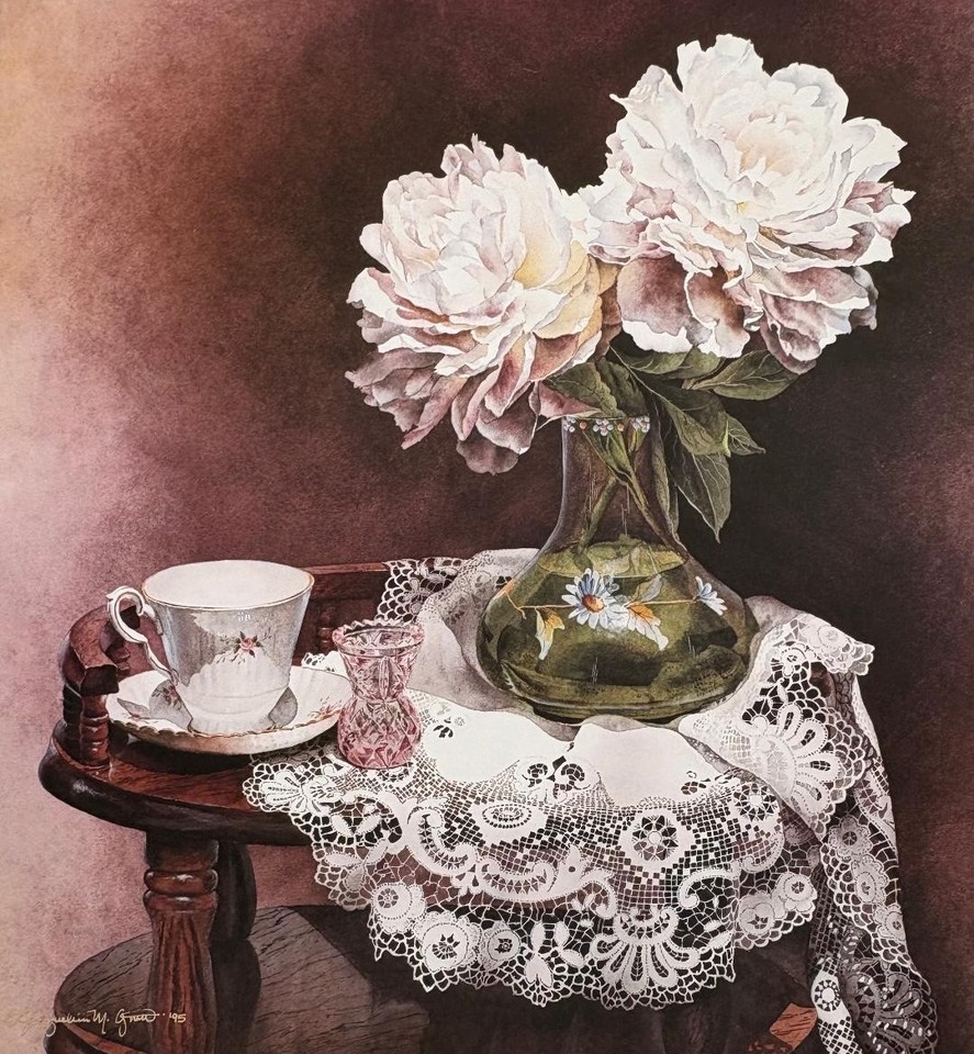 - Jacqueline Gnott Art ~Still Life with Peonies and Lace~Hand Signed/ Numbered
