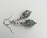 Beautiful Victorian filigree silver-tone Jade earrings. Drop earrings. Dangle earrings. Boho earrings. Bohemian earrings. Fine silver-toned floral leaf jade Boho earrings. Vintage style earrings. Jade beautiful earrings. Romantic earrings. Antique style earrings.