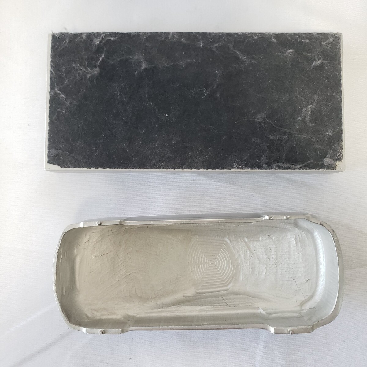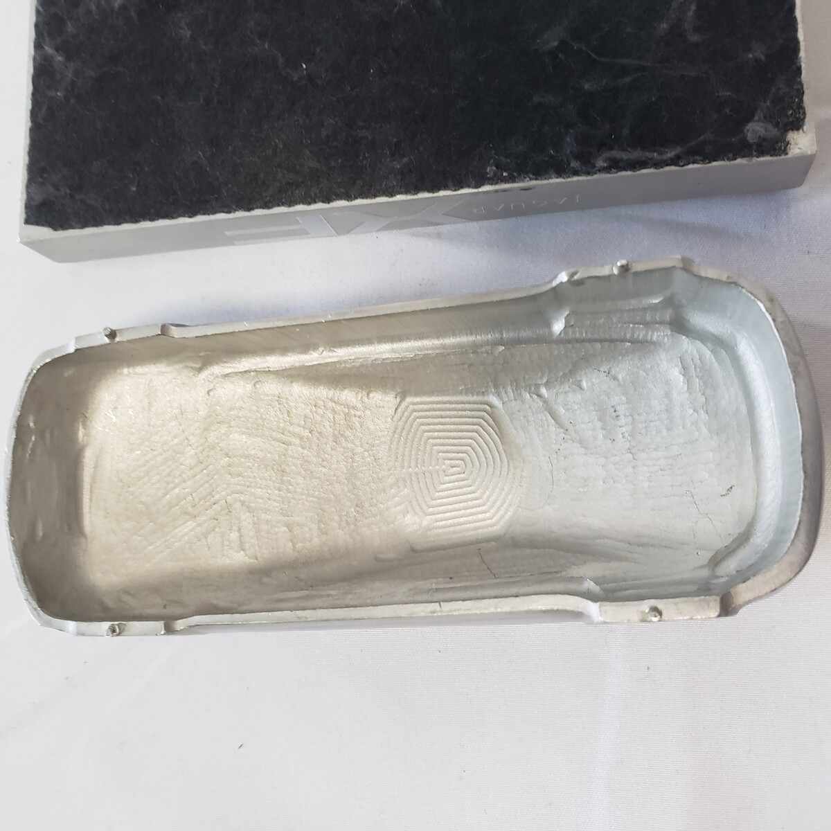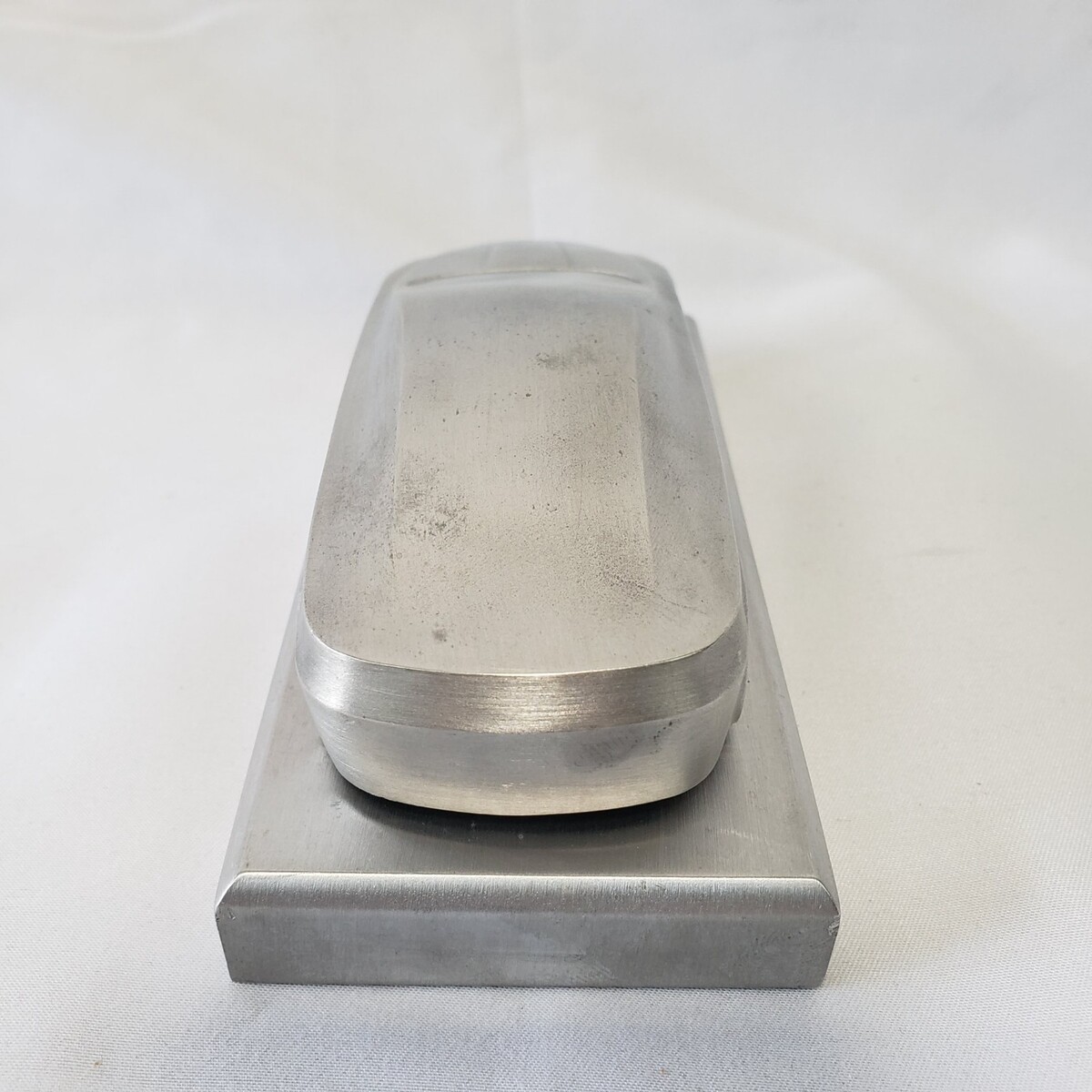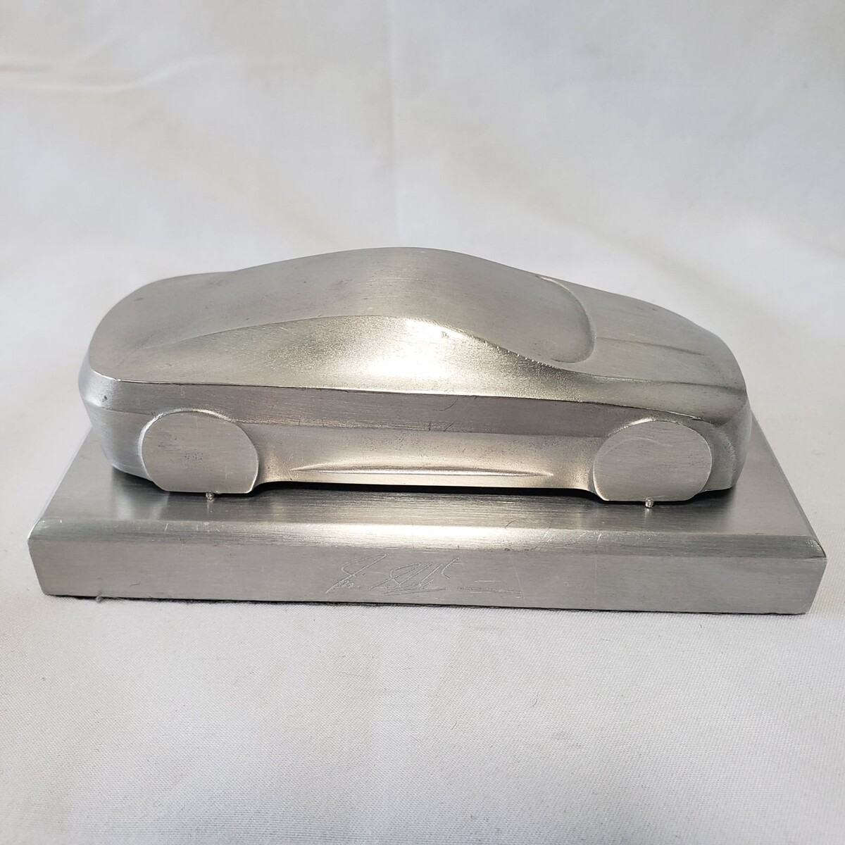 1:43 scale aluminum alloy / metal collectible car positioned on a custom-made aluminum ingot base. We acquired this desktop / tabletop art from a Philadelphia area Jaguar dealership owner.