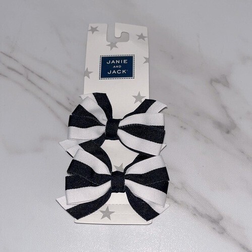This light blue bow barrette adds a charming touch to any child's hairstyle, with the contrasting black bow enhancing its stylish appeal. ? Grosgrain material ? Light blue with black bow ? Designed for children ? Easy to clip on ? Durable construction Size: Girls One Size Condition: New With Tags