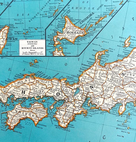 - Japan Honshu Taiwan 1935 Southeast Asia Map Pacific Ocean 14 x 11" LGAD99