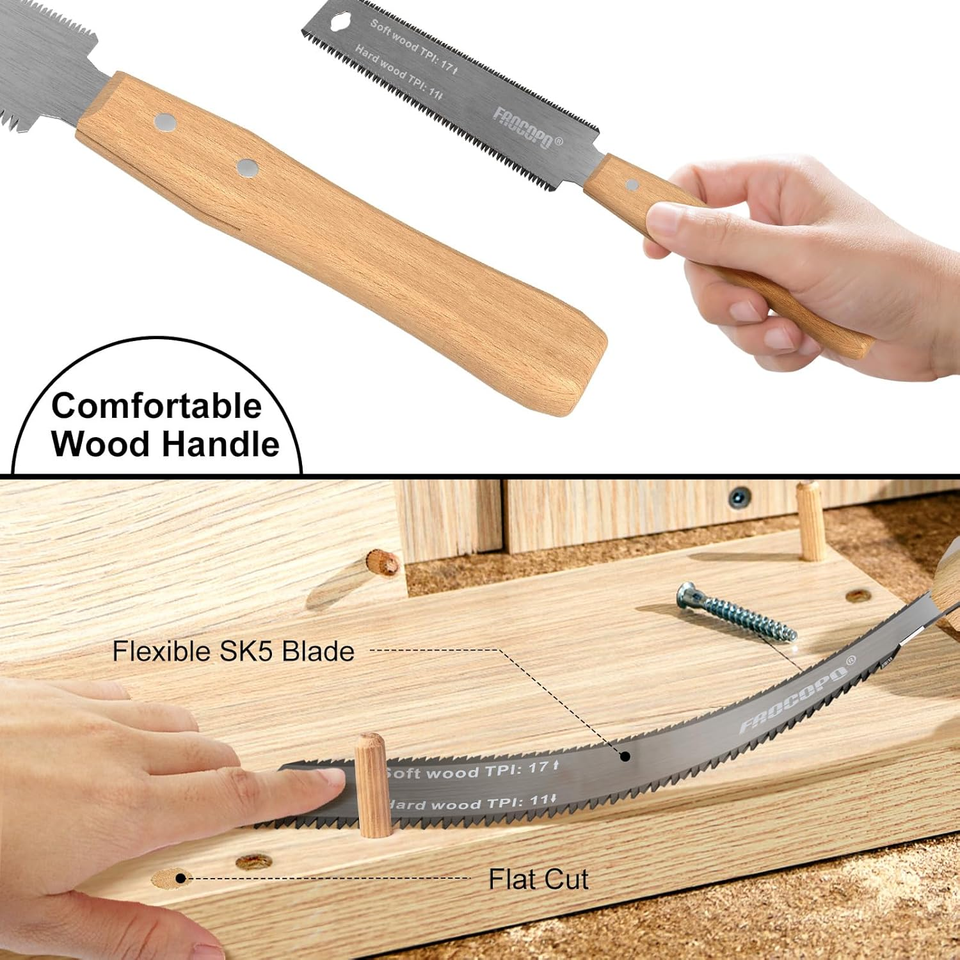 Versatile Cutting Options: This innovative hand saw features a double-edged blade, providing you with two distinct cutting experiences in one tool. The 11 tpi coarse teeth on one side are ideal for quick cuts, while the 17 tpi fine teeth on the reverse side ensure a smoother finish for detailed work. Whether you are tackling larger projects or intricate tasks, the Frocopo pull saw adapts seamlessly to your needs.