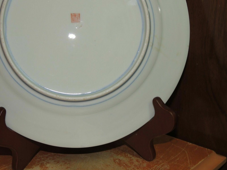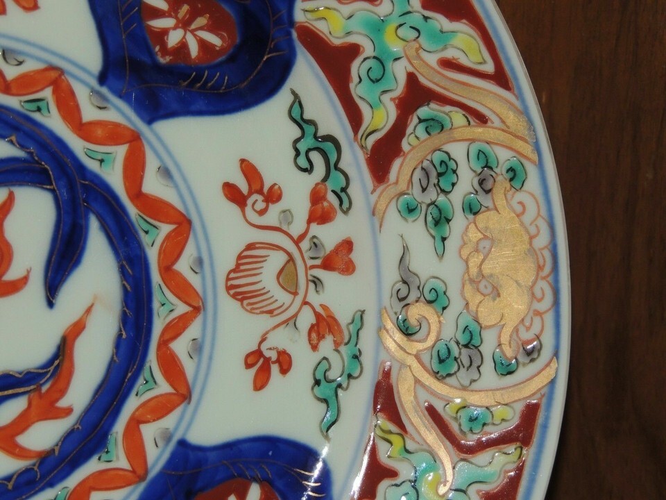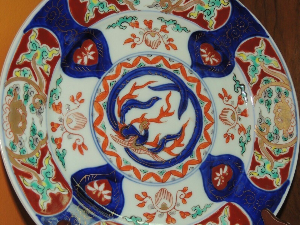 - Japanese Arita 9.5" Plate / Platter Foo Phoenix blue red gold Aoki Kyodai-Shokai