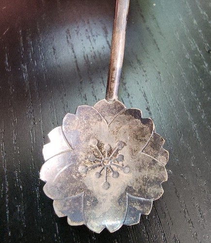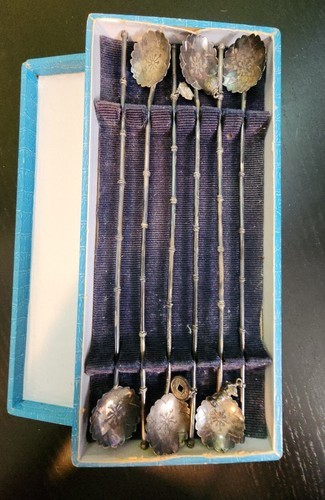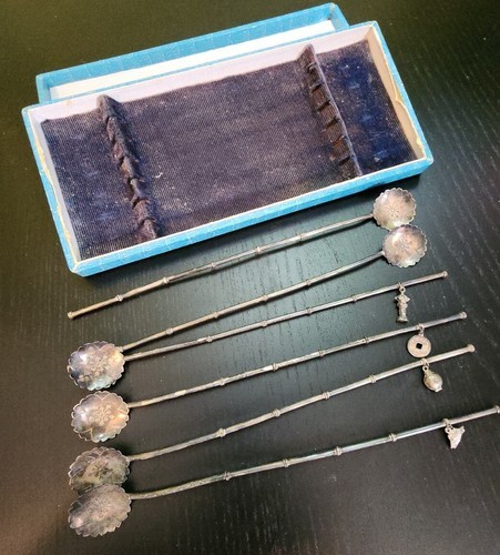 Japanese Iced Tea Sipper Spoon Set w/Figural Charms 950 Sterling Silver Boxed