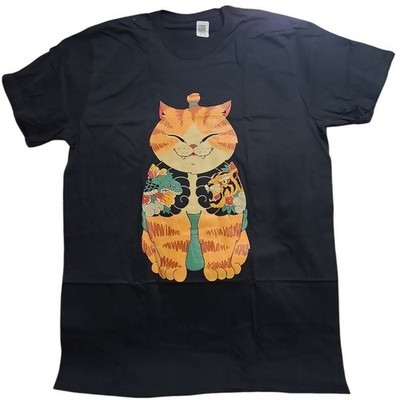 - Japanese Style Tattooed Cat Graphic T-Shirt Anime Kawaii Streetwear L