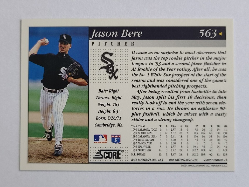 Jason Bere - 1993 Rookie - Chicago White Sox - Score 563 - 1994