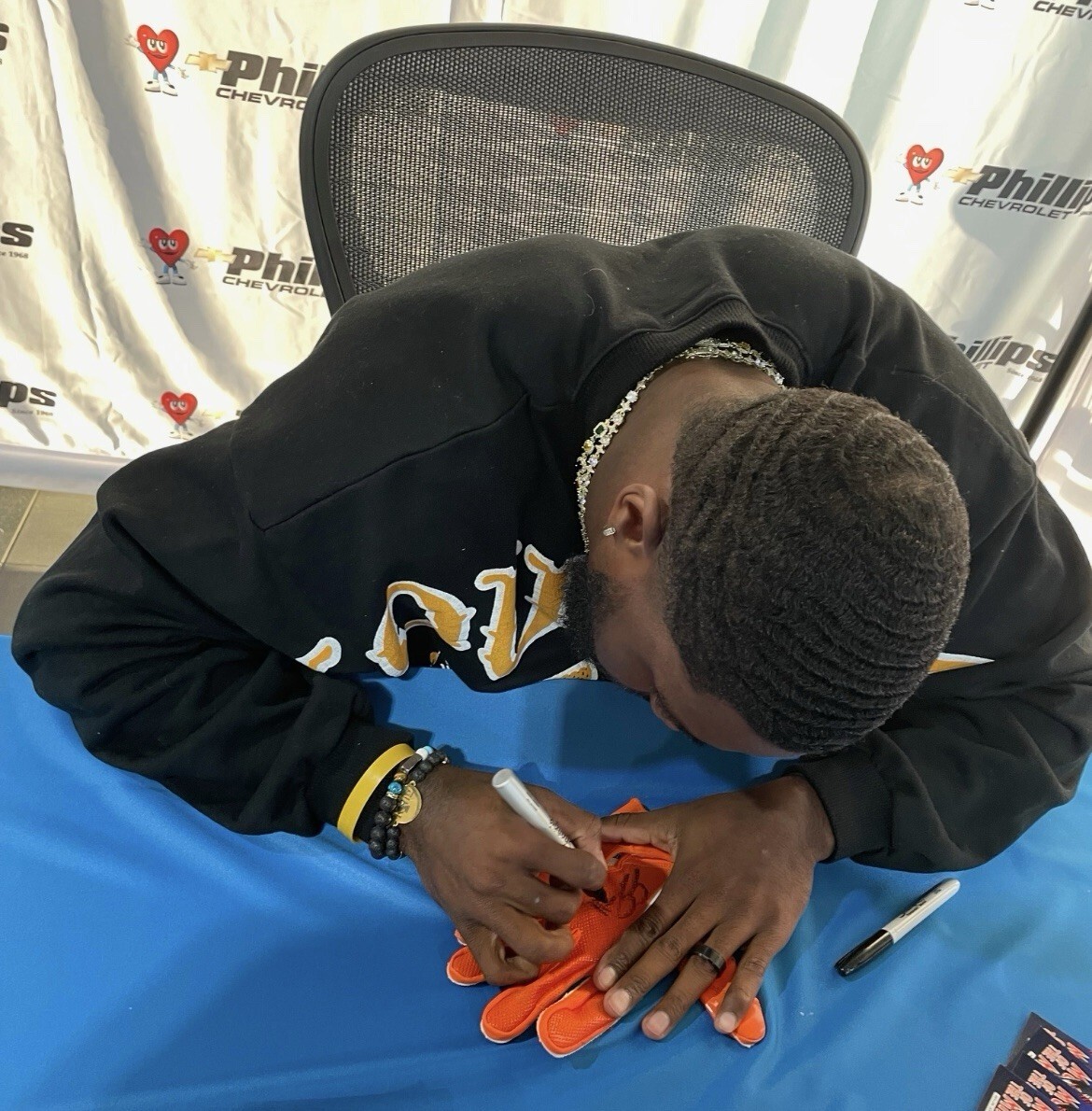 The product is a pair of game-used gloves signed by Jaylon Johnson, a Pro Bowl player for the Chicago Bears in the National Football League (NFL). The gloves serve as a unique and authentic piece of memorabilia for football fans, showcasing the player's connection to the team and the sport. This item would hold value for collectors and fans of the Chicago Bears, offering a tangible link to the player's performance on the field.