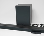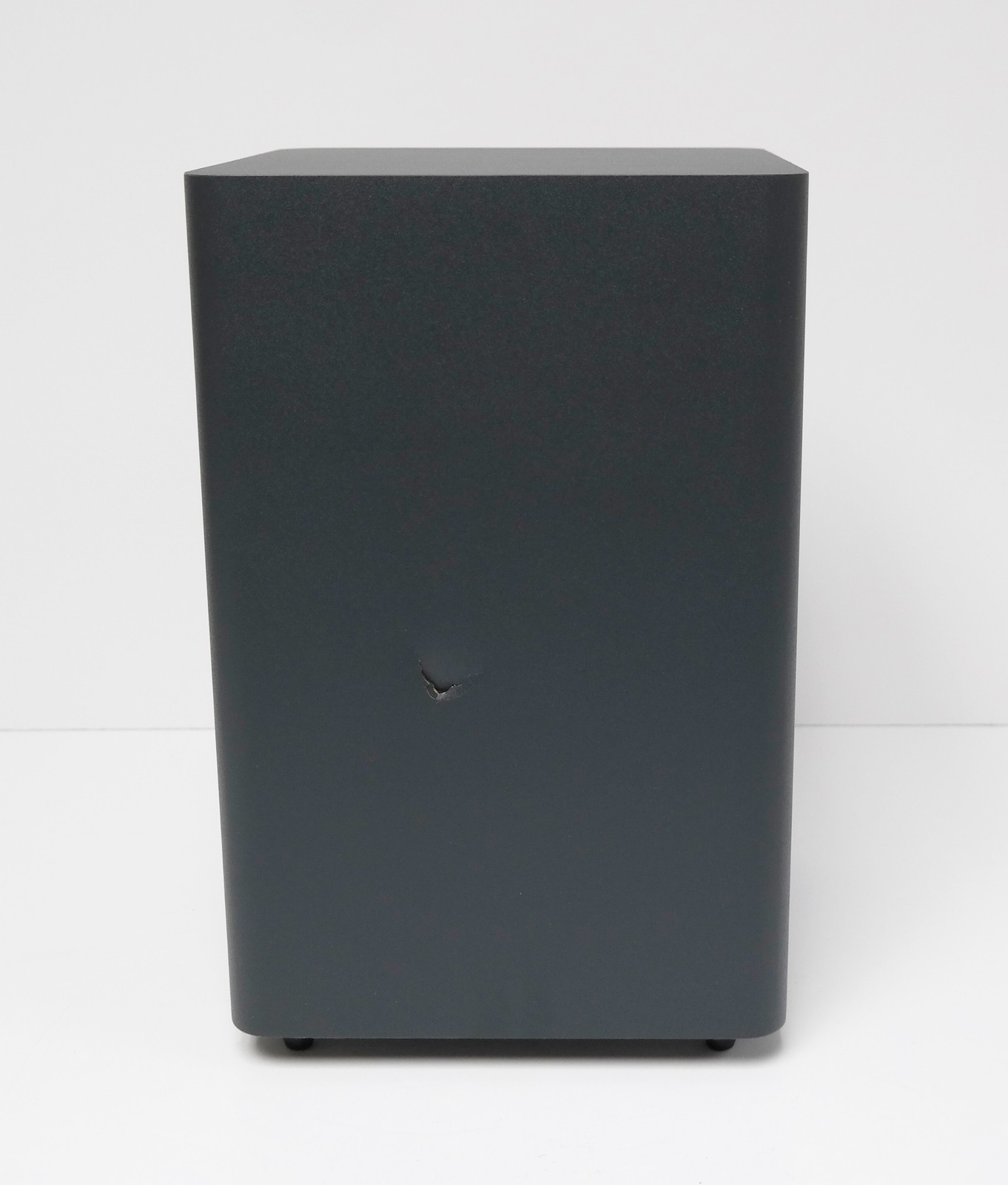 Description: Includes Soundbar, Wireless Subwoofer, HDMI Cable, Power Cable x2, Remote with batteries. Scratches and scuffs on the bodies on soundbar and sub. Chips on teh body of subwoofer.