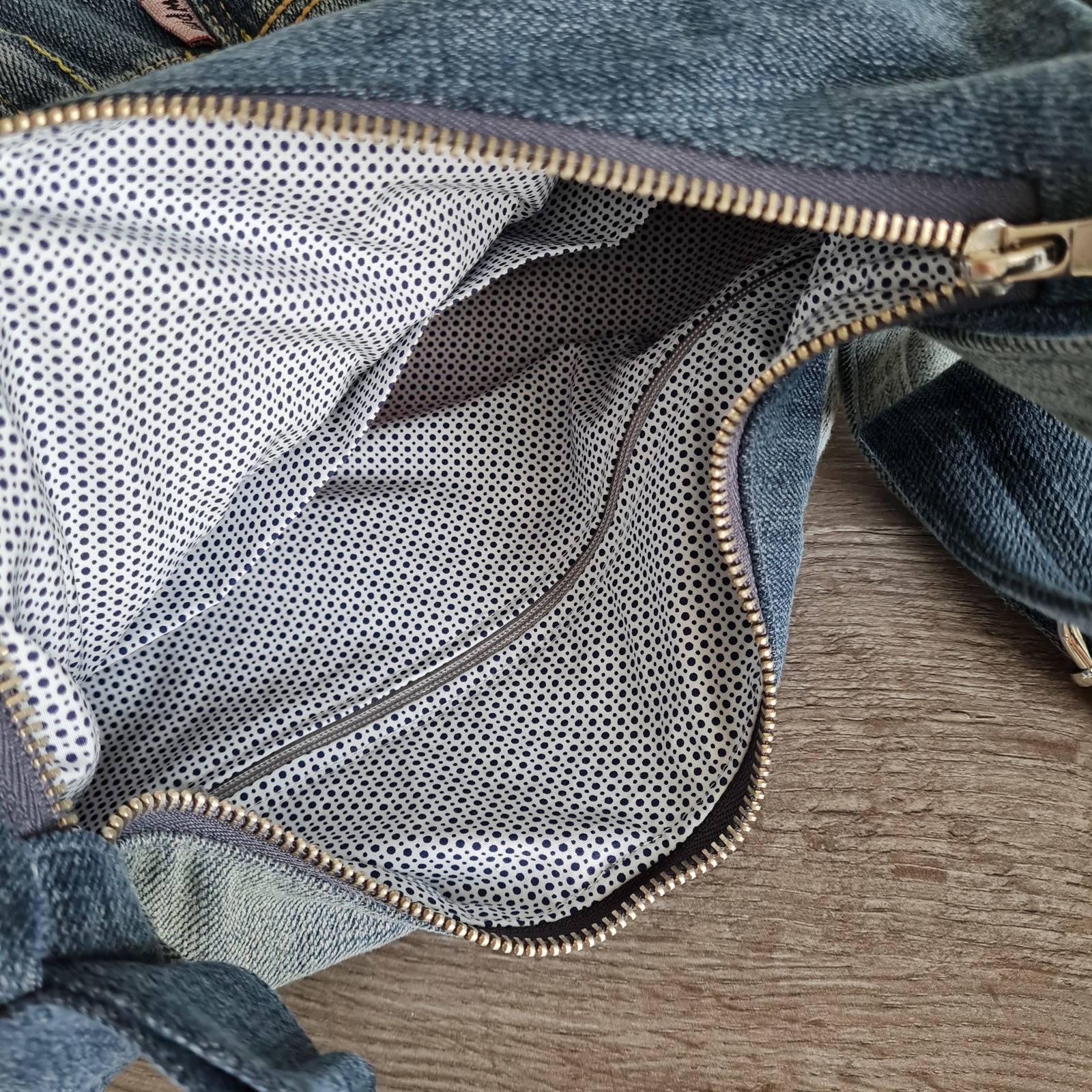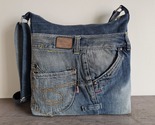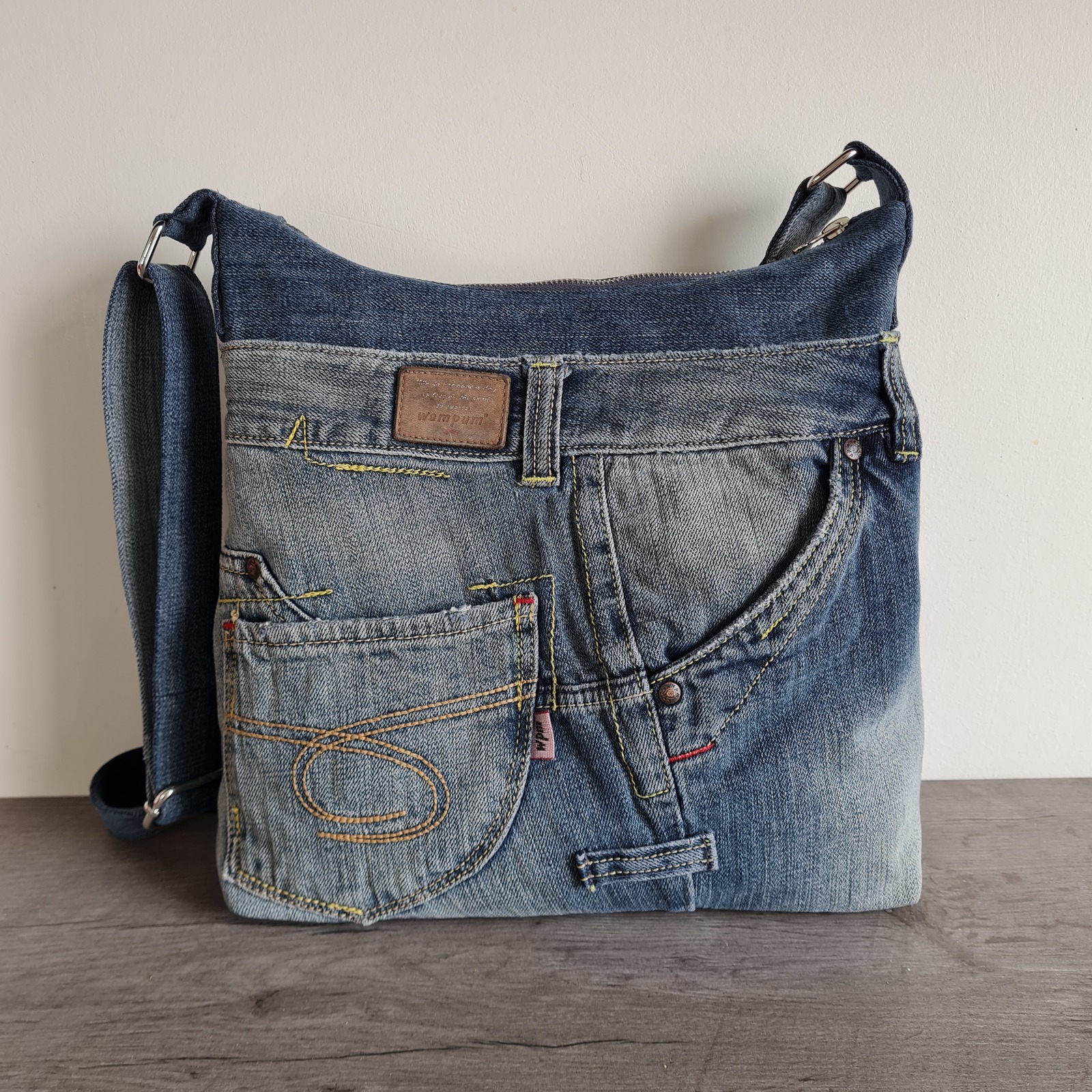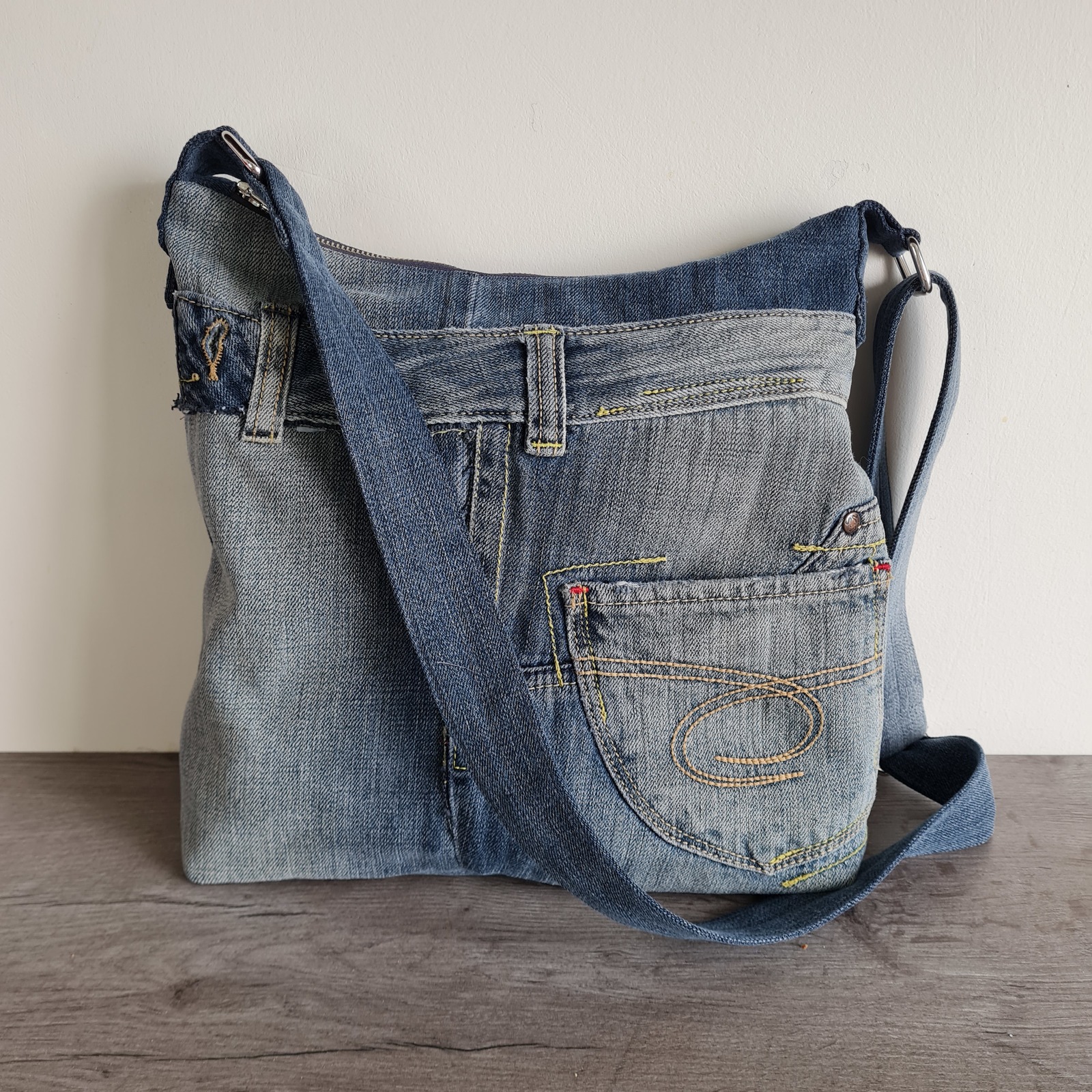 - Jeans bag medium size, Distress style Jeans recycled bag, Denim upcycled crossbo