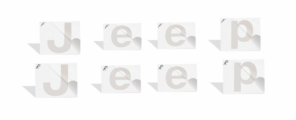 -Each letter is separate (J, e, e, and P) for ease of application.