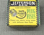 Original box of Jefferson Gem Plug Fuses, model No. 388-106, rated at 6 amps. Each fuse features a clear mica window for visible elements and safety inspection, marked Jefferson Electric Co., Bellwood, Illinois.