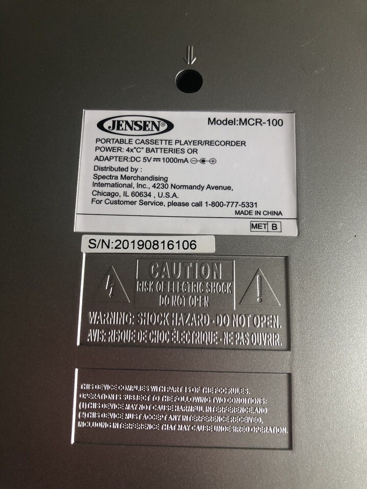 Jensen MCR-100 Cassette Player & Recorder - Silver/Black Open Box No Mic