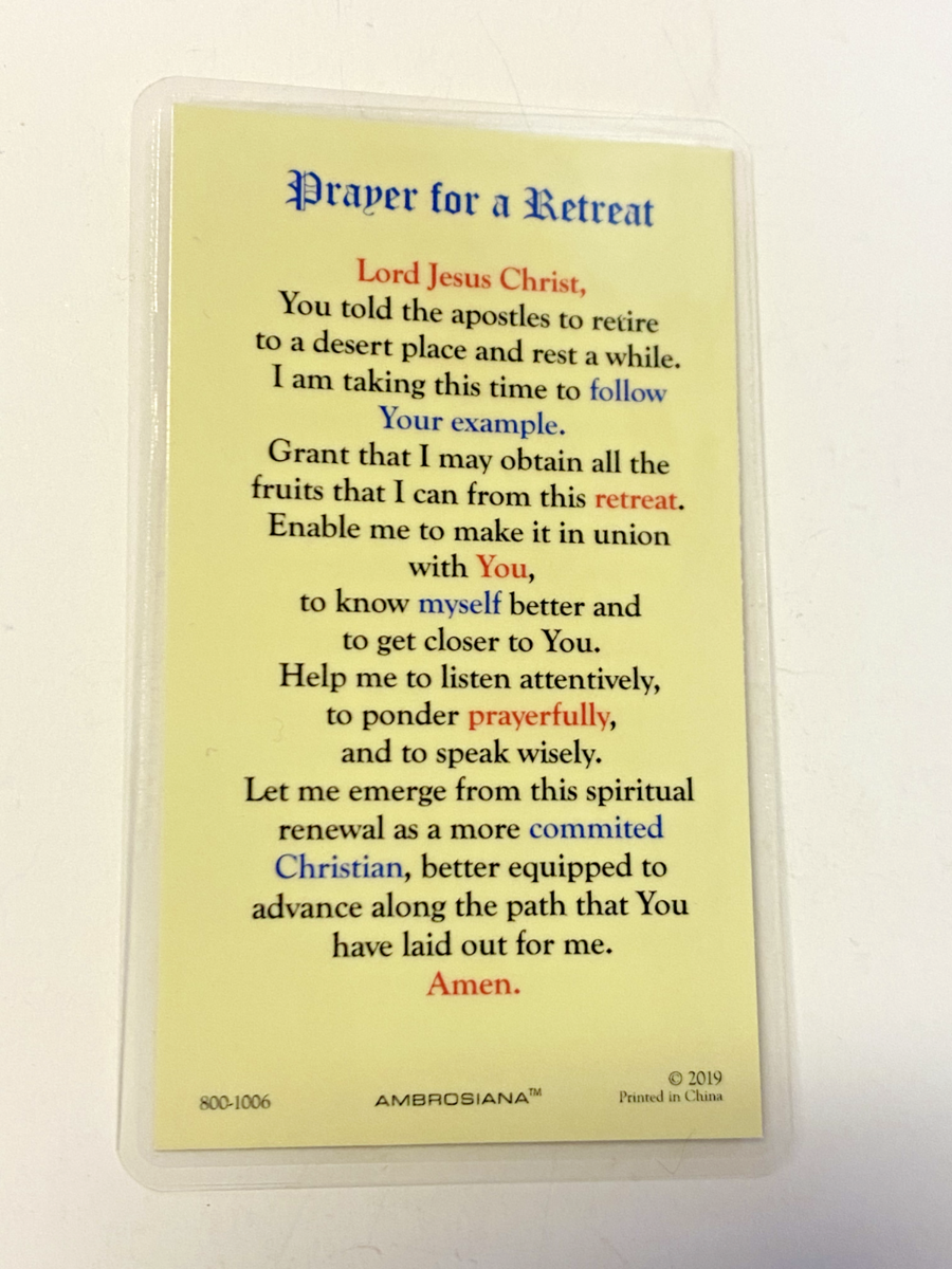 - Jesus Christ/"Prayer for Retreat " Laminated Prayer Card, New #PCL-21