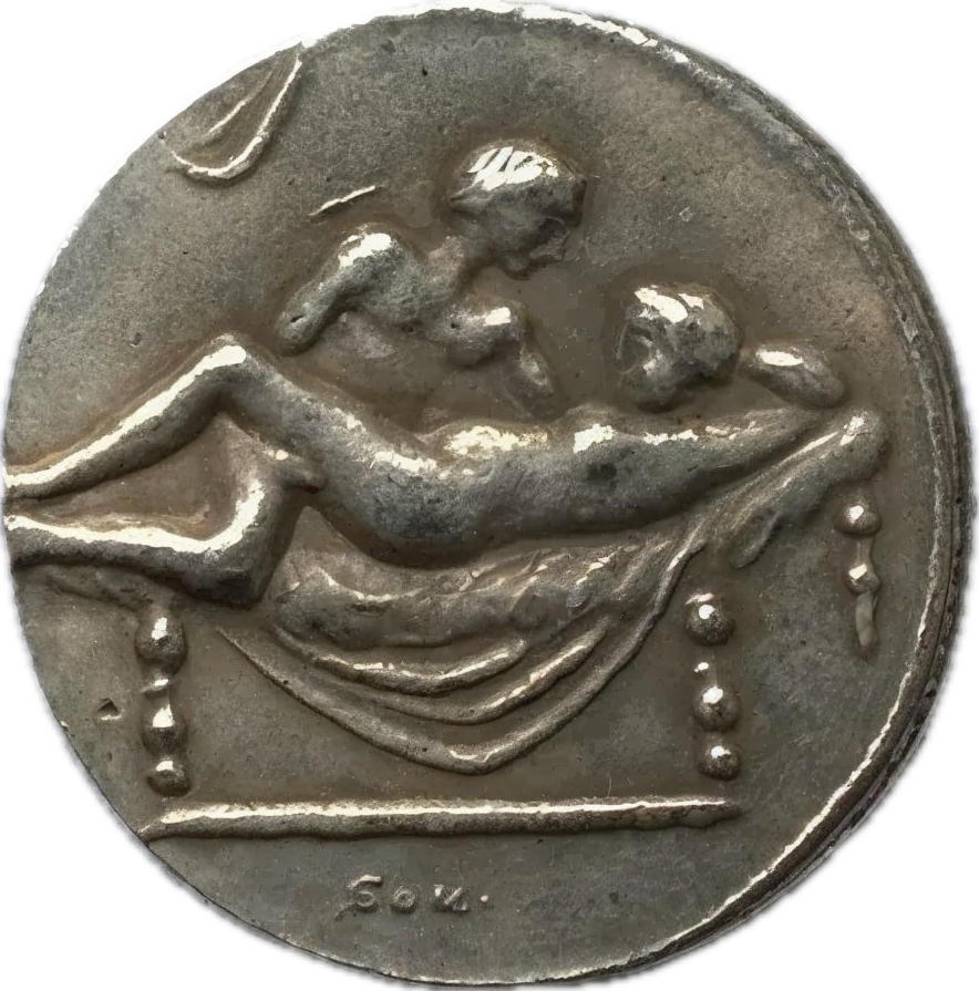 Jeton érotique Spintria - Scène I - Médaillon en bronze d'inspiration romaine